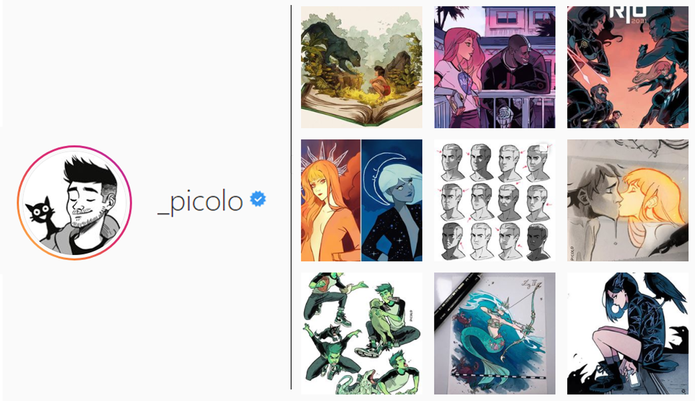 El día de hoy les quiero recomendar a uno de mis ilustradores favoritos, su nombre es Gabriel Picolo, es de Brasil, es bastante famoso en Instagram que es donde más publica su arte, se centra en ilustraciones de personajes dibujados a su estilo, así como también cómics con historias que pueden dejarte mucho.