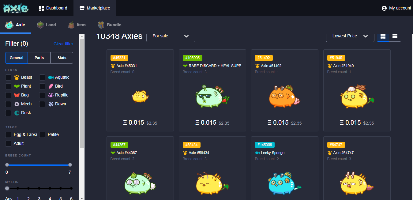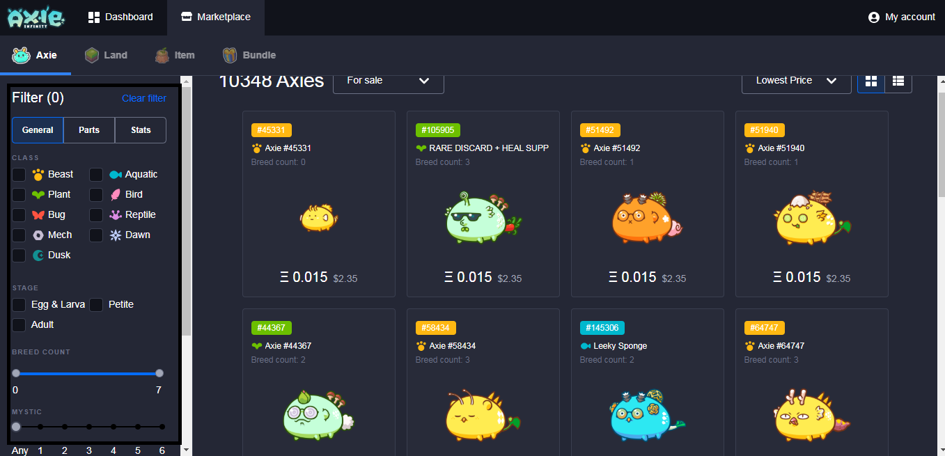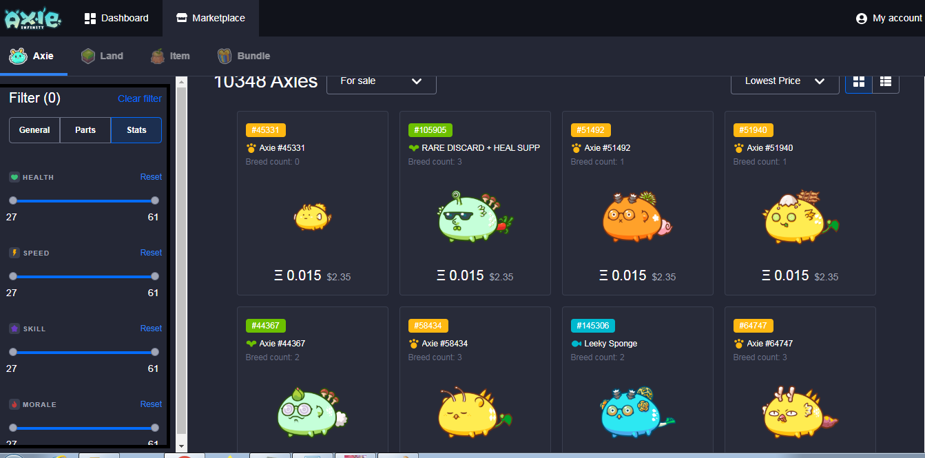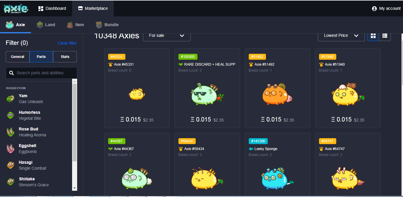 Luego de ellos solo deberás buscar tu axie de preferencia y comprarlos. Para batallar dentro del fabuloso mundo de axies infinito.