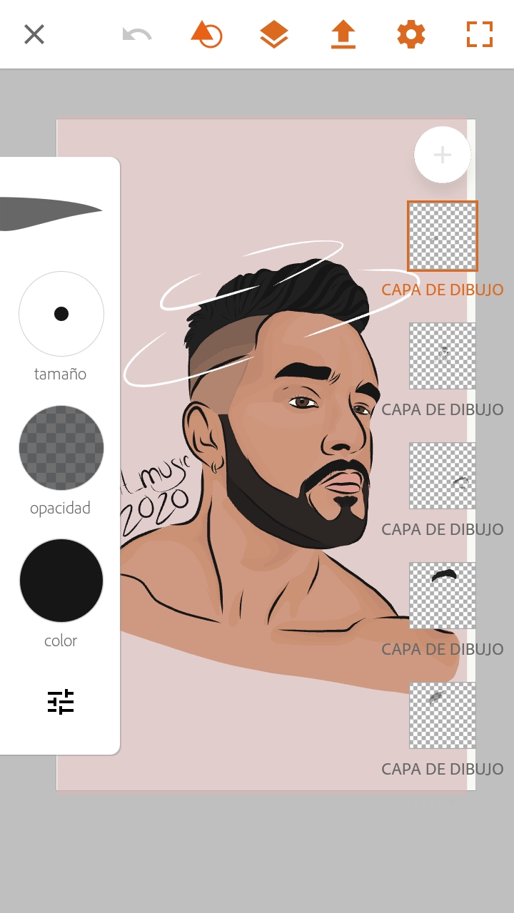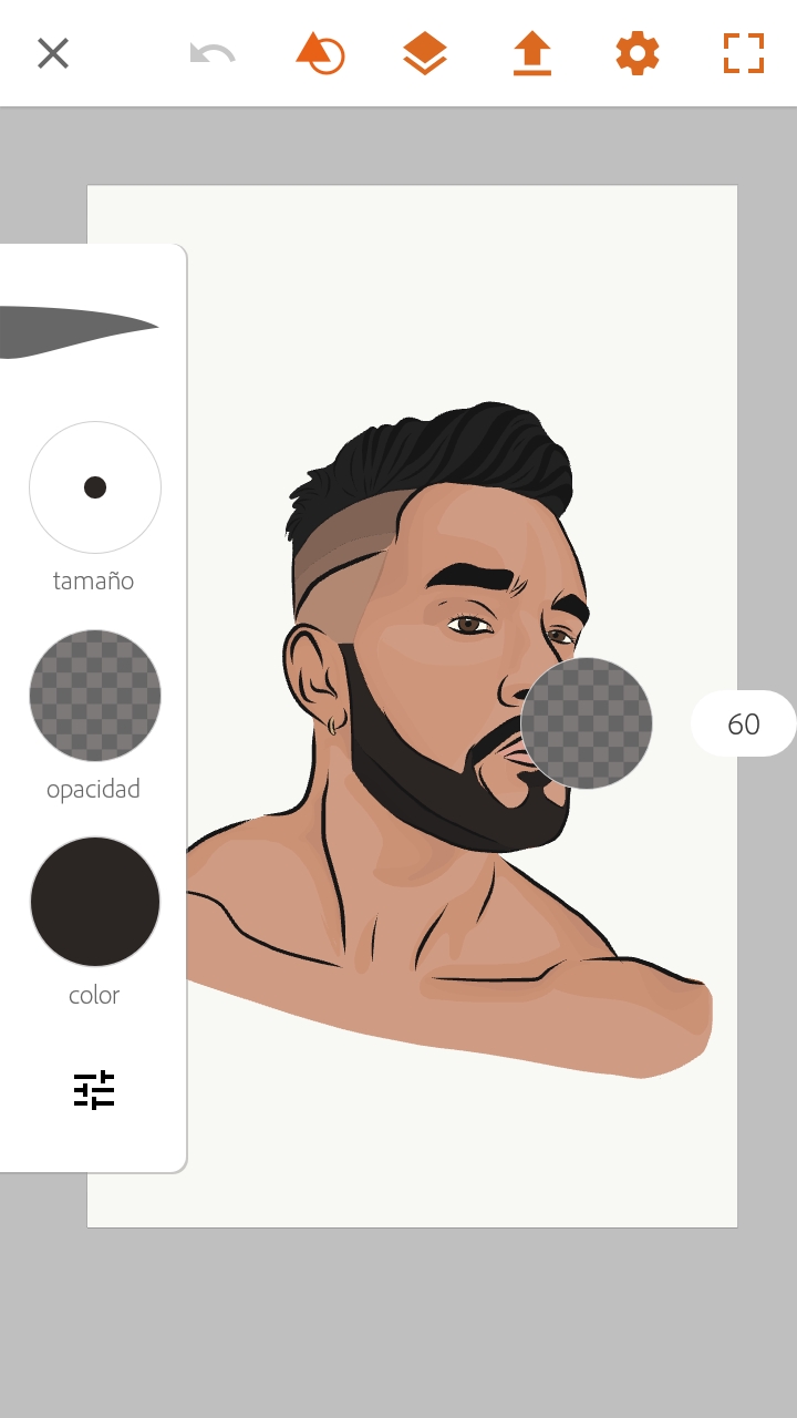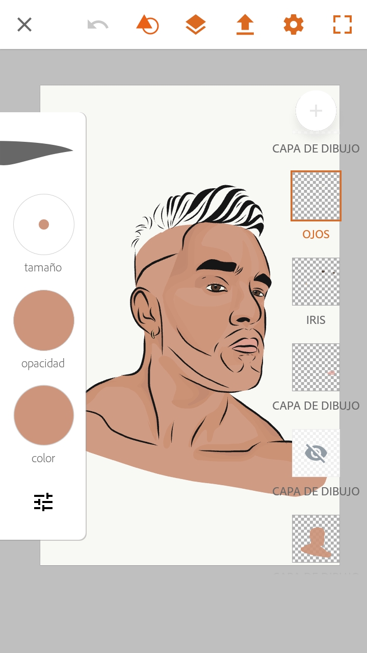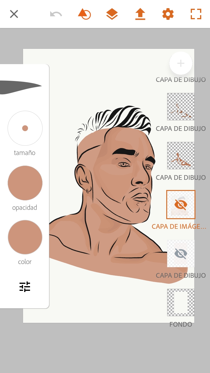 Una vez finalizado este paso, vamos a colocar en una capa por encima de todas estas, el color de piel, jugando un poco con la opacidad del mismo para que se puedan diferenciar las sombras debajo.