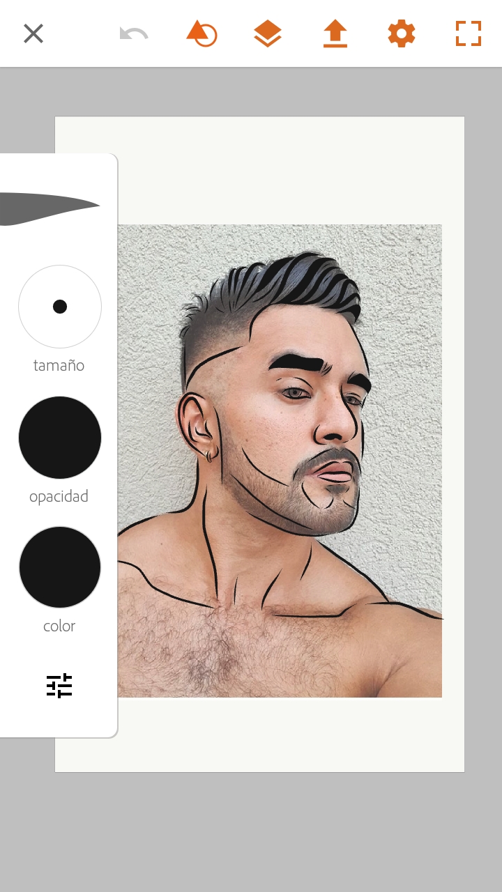 Dibujamos el contorno del objeto, y engrosamos trazos que queremos resaltar. Yo elegí la imagen de un hombre, así que al proceder a realizar esto, también pinto cejas y detalles del cabello.