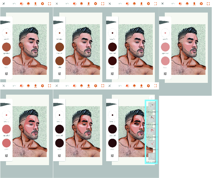 Luego de terminar todas las tonalidades de la piel, podemos empezar con otros elementos del dibujo tal como lo son, ojos y labios en este caso.