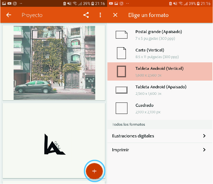 Empezaremos abriendo la aplicación, y seleccionaremos el signo "+" para empezar un nuevo dibujo, les aparecerá una lista de formatos de imagen, en el cual yo seleccioné Tableta Android Vertical por comodidad de publicación en redes sociales.