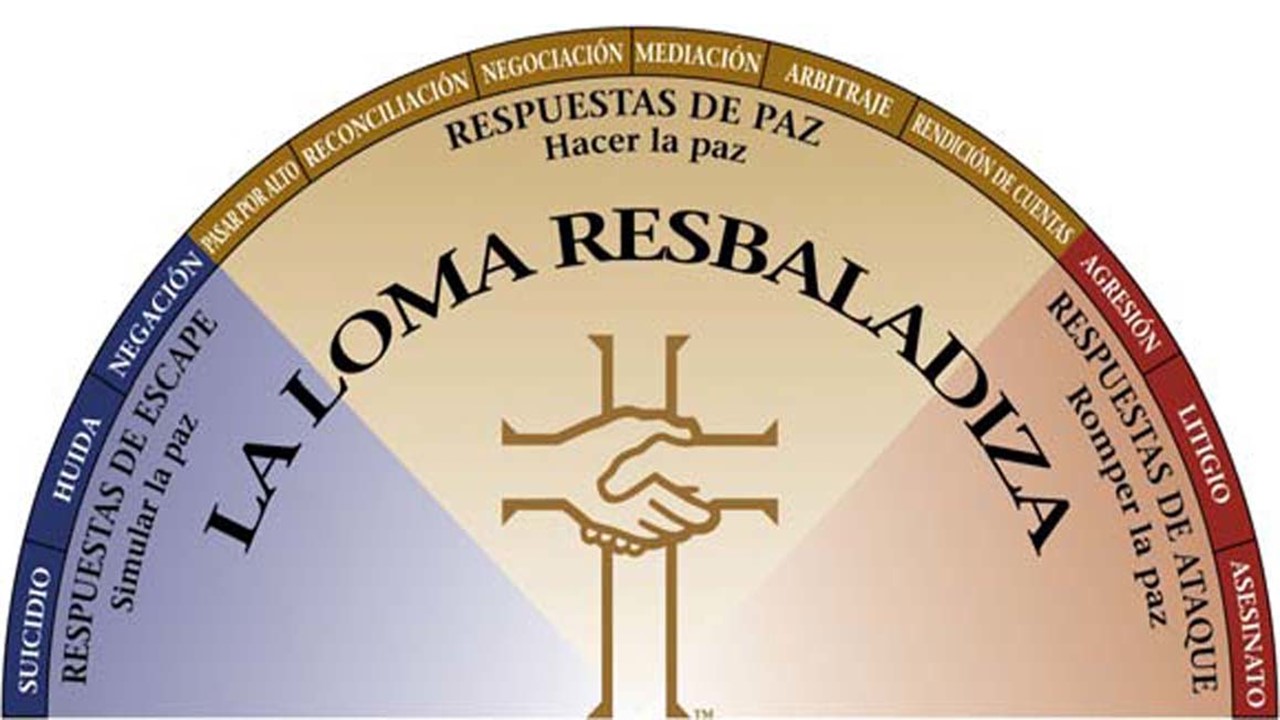 El autor utiliza esta figura debido a que en una loma de esta naturaleza (Imagínate una loma cubierta de hielo) es difícil mantenerse en pie desde el centro, sobre la loma; las personas tienden a deslizarse hacia el lado derecho o el izquierdo. En el lado izquierdo encontramos las Respuestas de Escape al conflicto, mientras que del lado derecho hallamos las Respuestas de Ataque. Mantenernos en el centro de la loma es la clave, allí tenemos las Respuestas de Paz; acompáñame a ver esto en detalle.