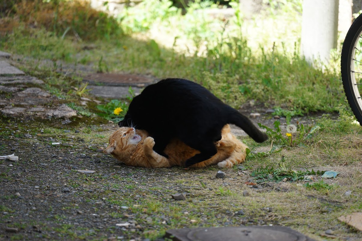 今回たまたま出くわしたのですが、両者カメラを気にせずガチでバトってくれたのでたくさん撮れた結果こういう記事になりました。