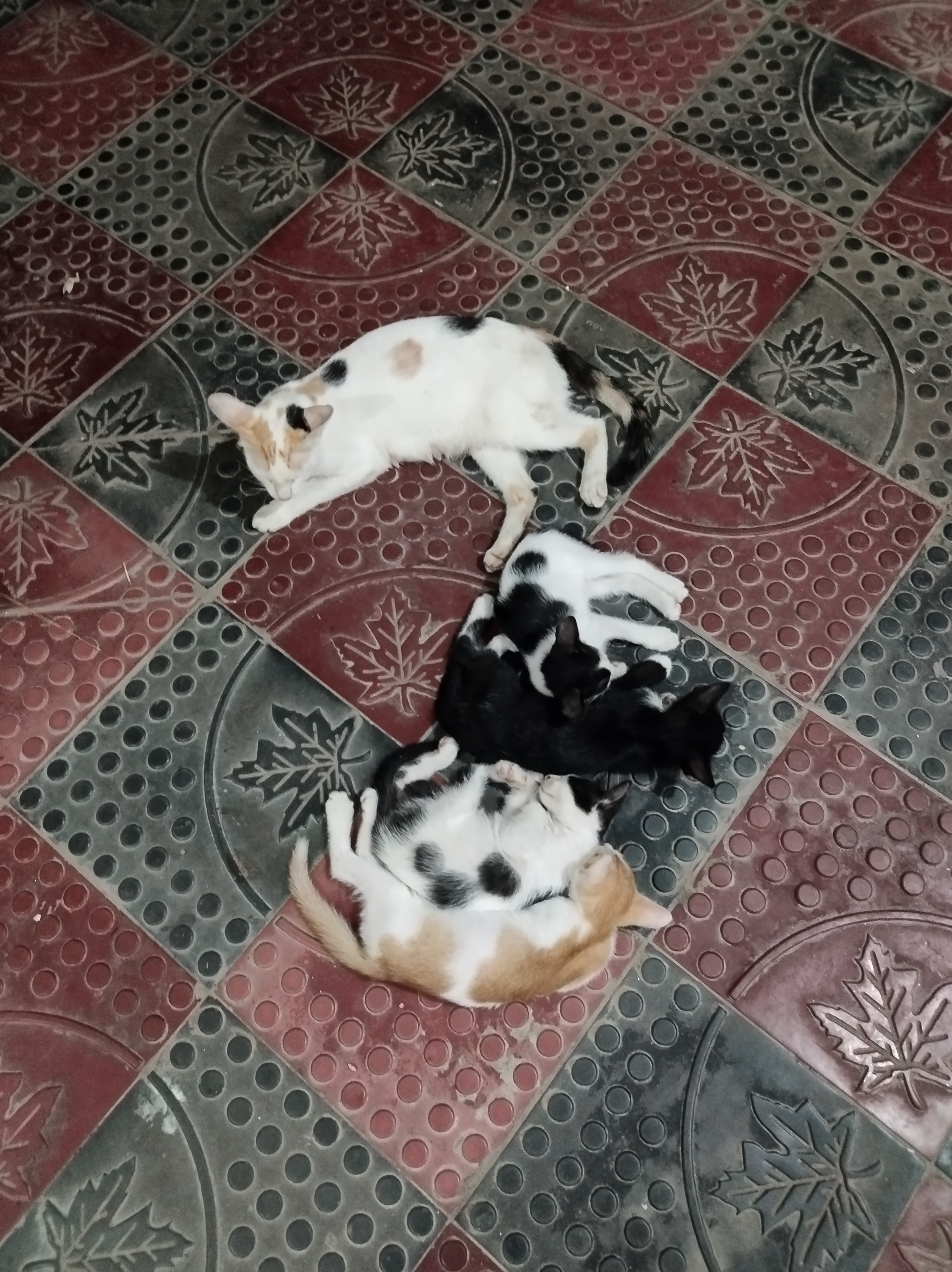 Cute mother cat and four children