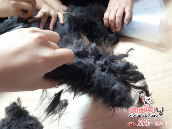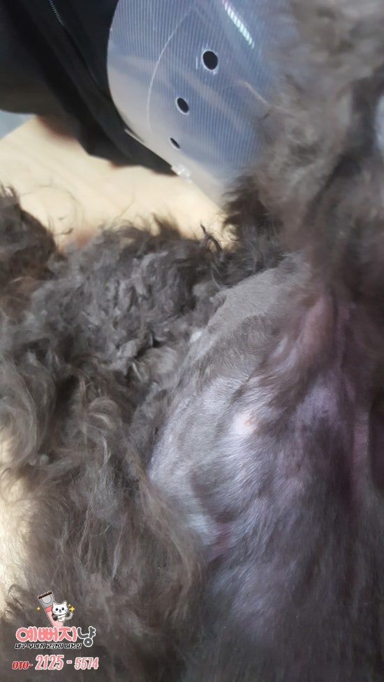 엉킨 털을 잘라내고~ 약용샴푸로 박박 씻겨 말려서 보내준아이~