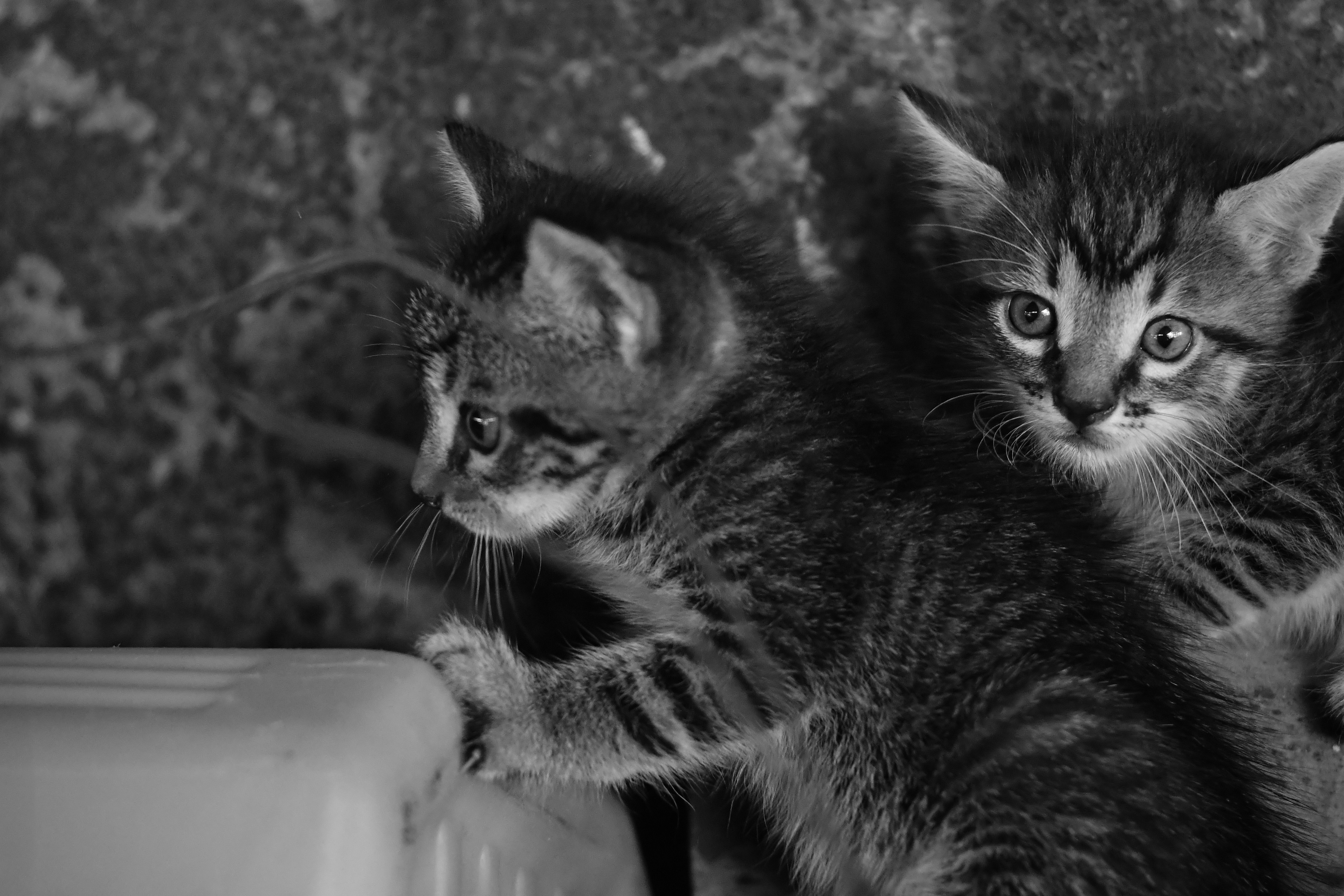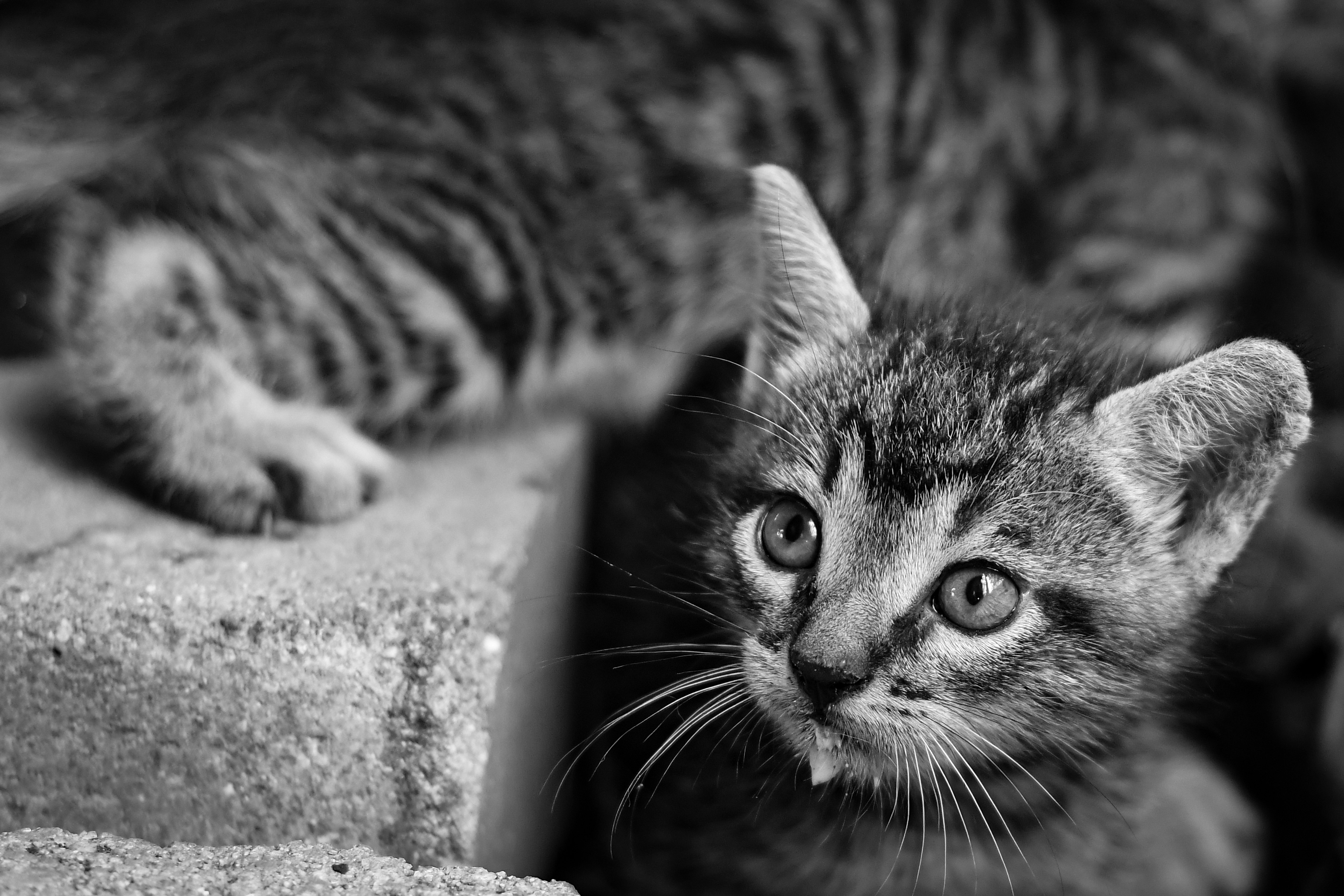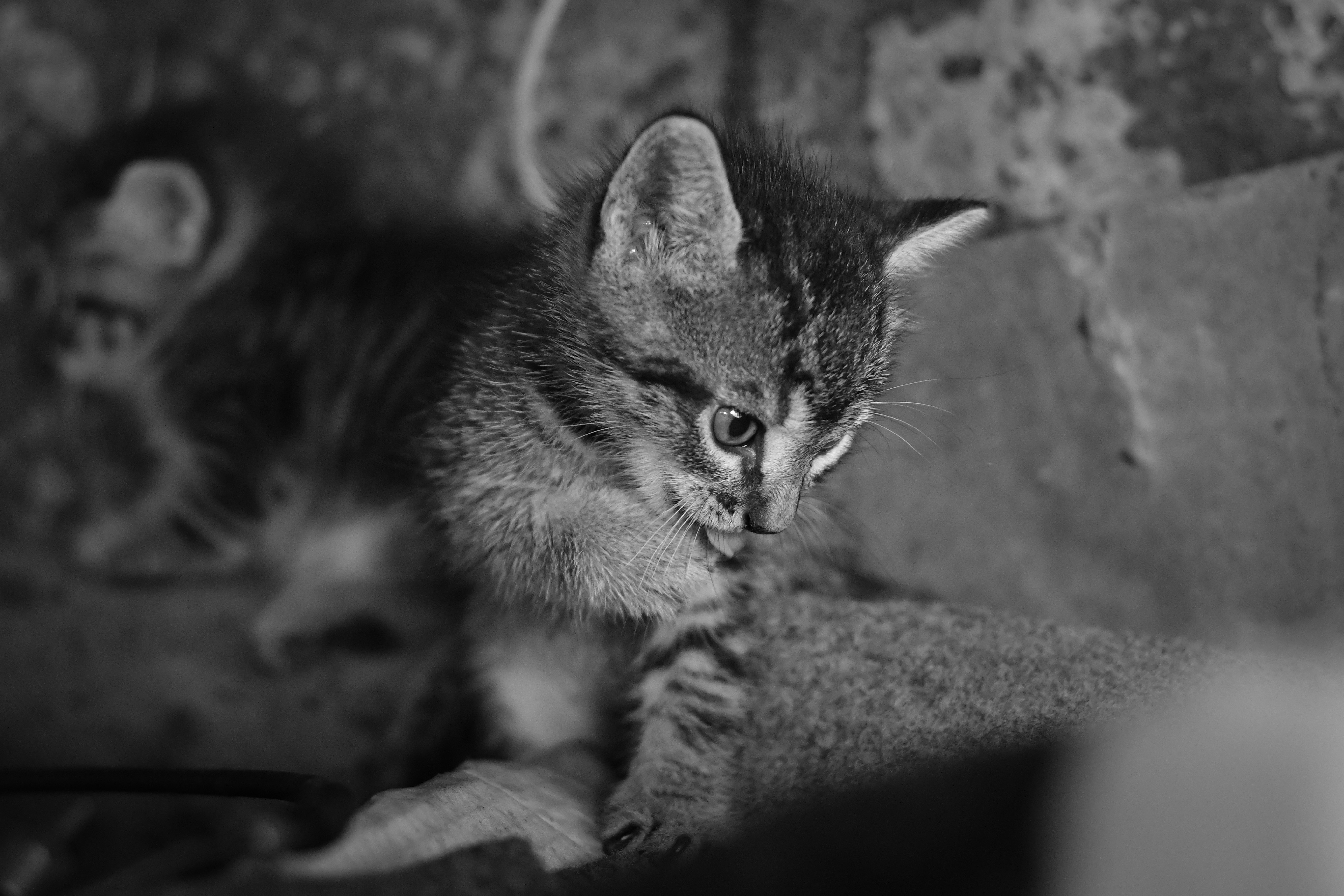 Today I bring you a selection of photos about the kittens in my garage, a stray cat chose to raise her little ones in a corner of the garage, a few days ago and with great care I took some photos of these small cats that are very friendly, there was very little lighting I had to use a 50 mm lens and shoot with an aperture of 1.8 mm hence the pronounced blur in some photographs..