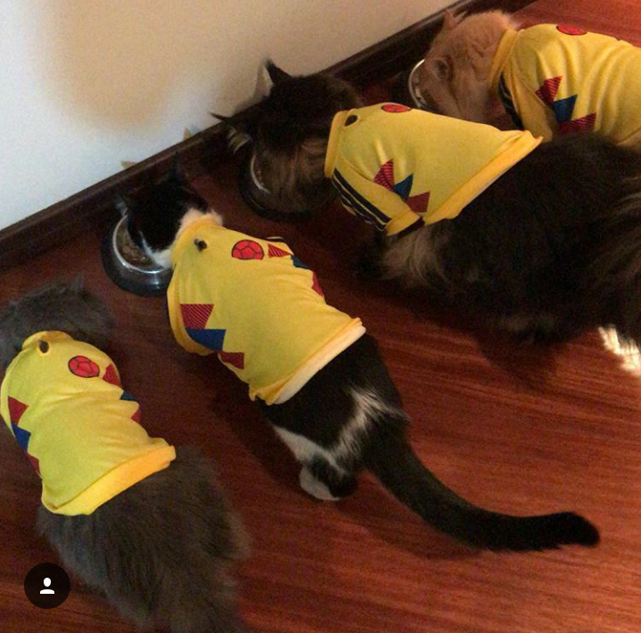 Para dar inicio a la fiesta mundialista, aprovechando toda la euforia que vive colombia con su selección, ella les compro su franela y ellos muy vanidosos son participes de dicha alegria 💗.