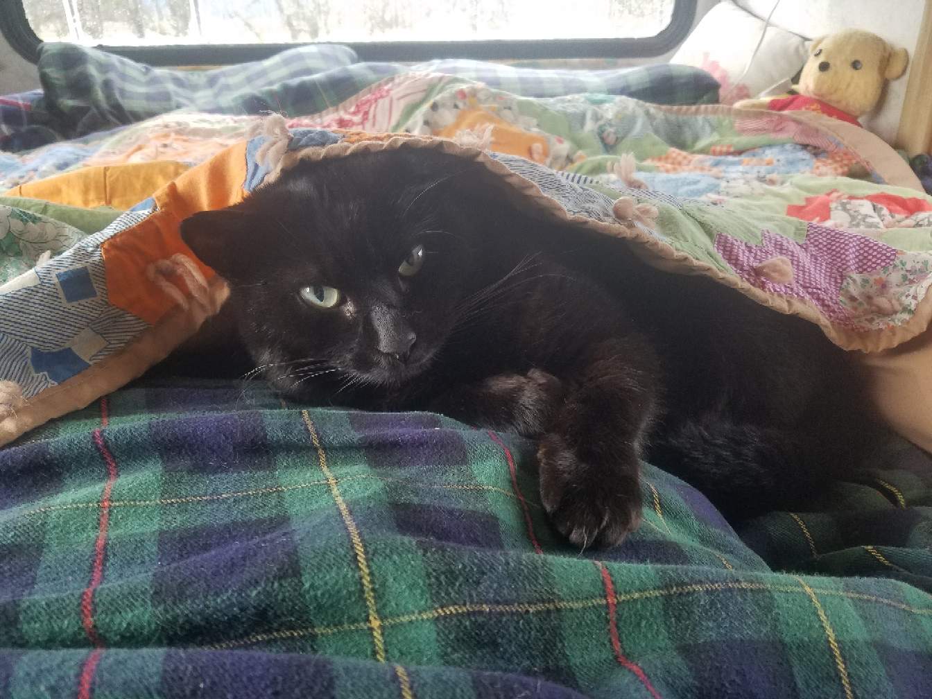 This is Reska. While patiently waiting on noms the other day, he decided to tuck himself under the blanket. Such amazing patience.