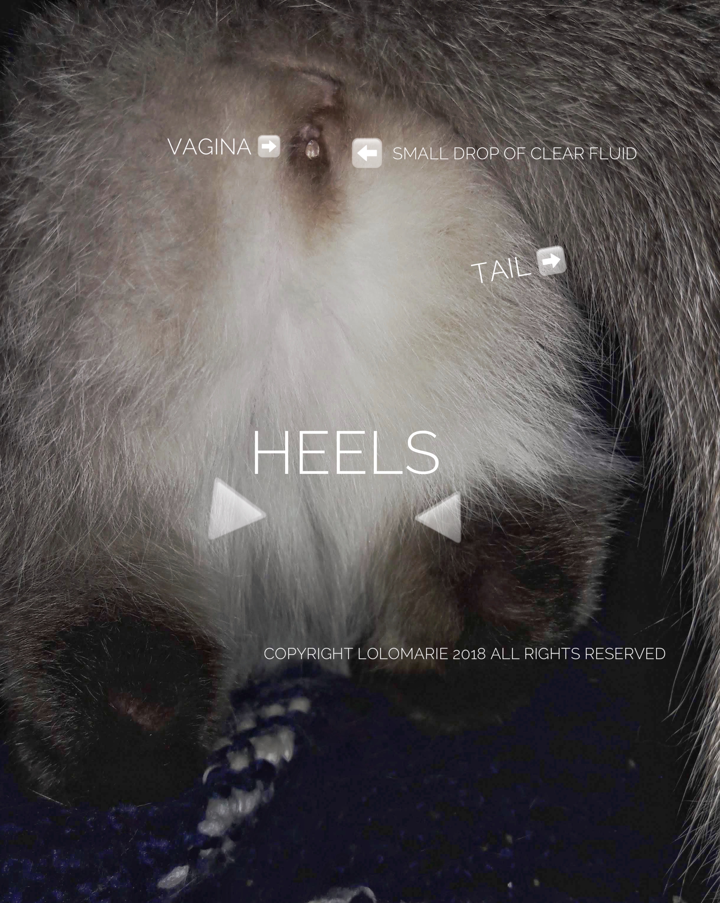 So, what can you do? Honestly, not much. I feel for my Sweetie cause I know how crampy and miserable I used to be with a human menstrual cycle. I guess I project my old feelings from that onto her and what I believe she must be feeling. Online, it says that Estrus can be painful. I like to let her lay on my chest or abdomen and wrap a blanket around her, talking gently to her and rubbing her head and or her back. The upper back, not near the tail as that seems to agitate her. The blanket and or the heat of the blanket calms her, she sometimes falls asleep, mostly when I just rub her head. If you just place your hand on their back over the blanket, you can feel the body convulsing, not sure if that is painful or not? I think our kitties need our love and compassion during this time until they are spayed. (Below, photo of female cat anatomy with clear fluid on vagina.)