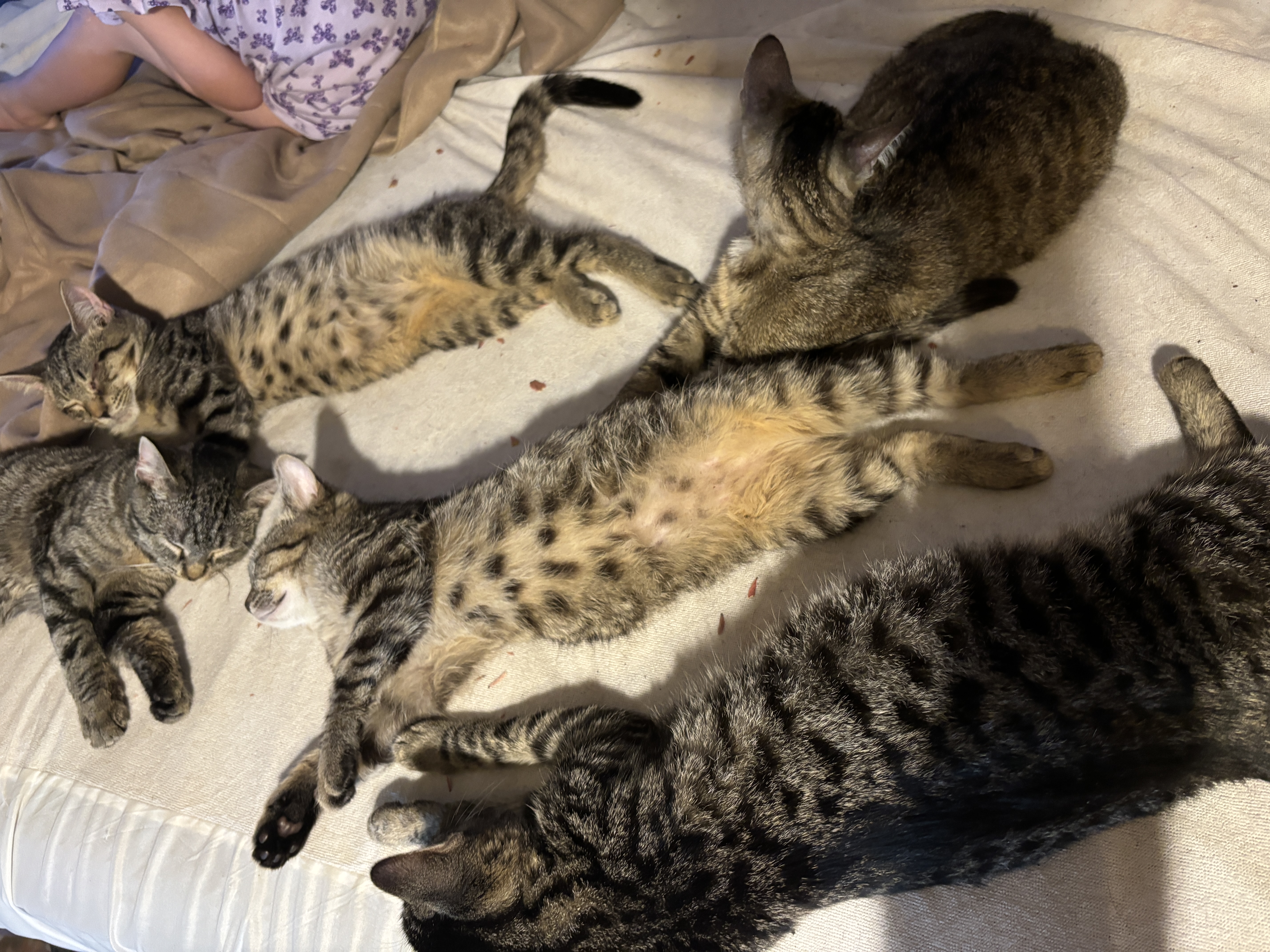 I didn’t exactly plan to have four sibling cats. I rescued their mom and she decided my bed was the safest place in the world to have her babies.