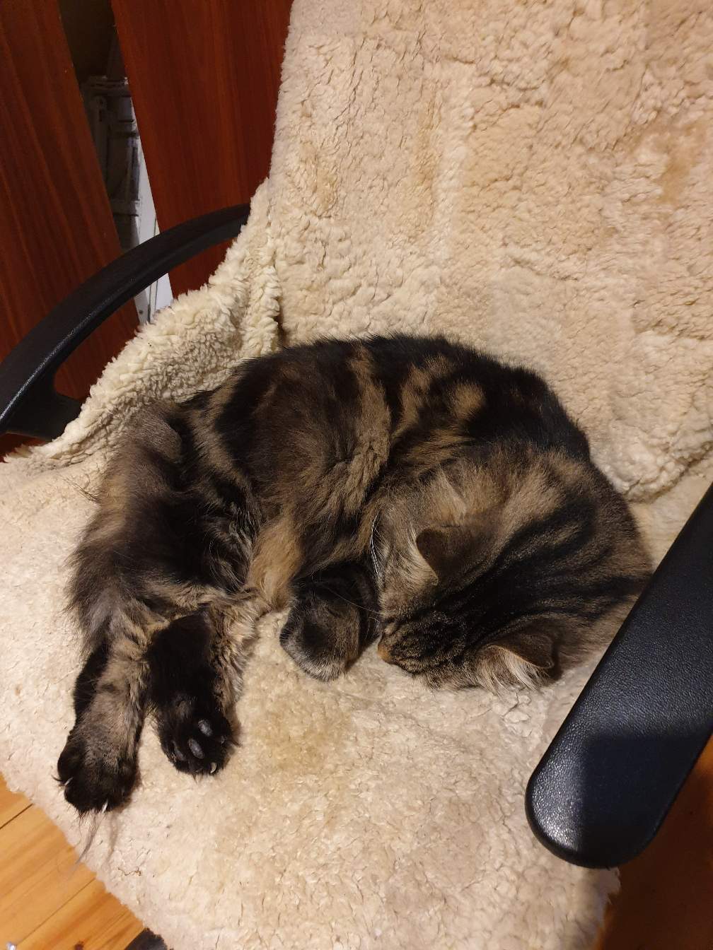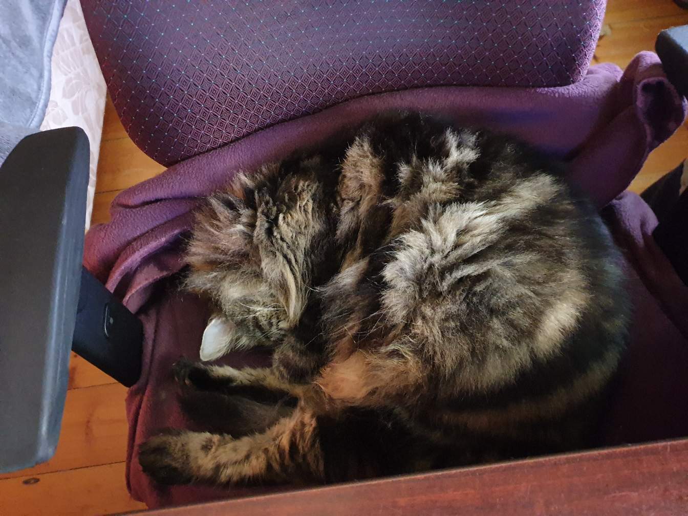 When Max is not sitting on the computer desk he can often be found on one of the office chairs.