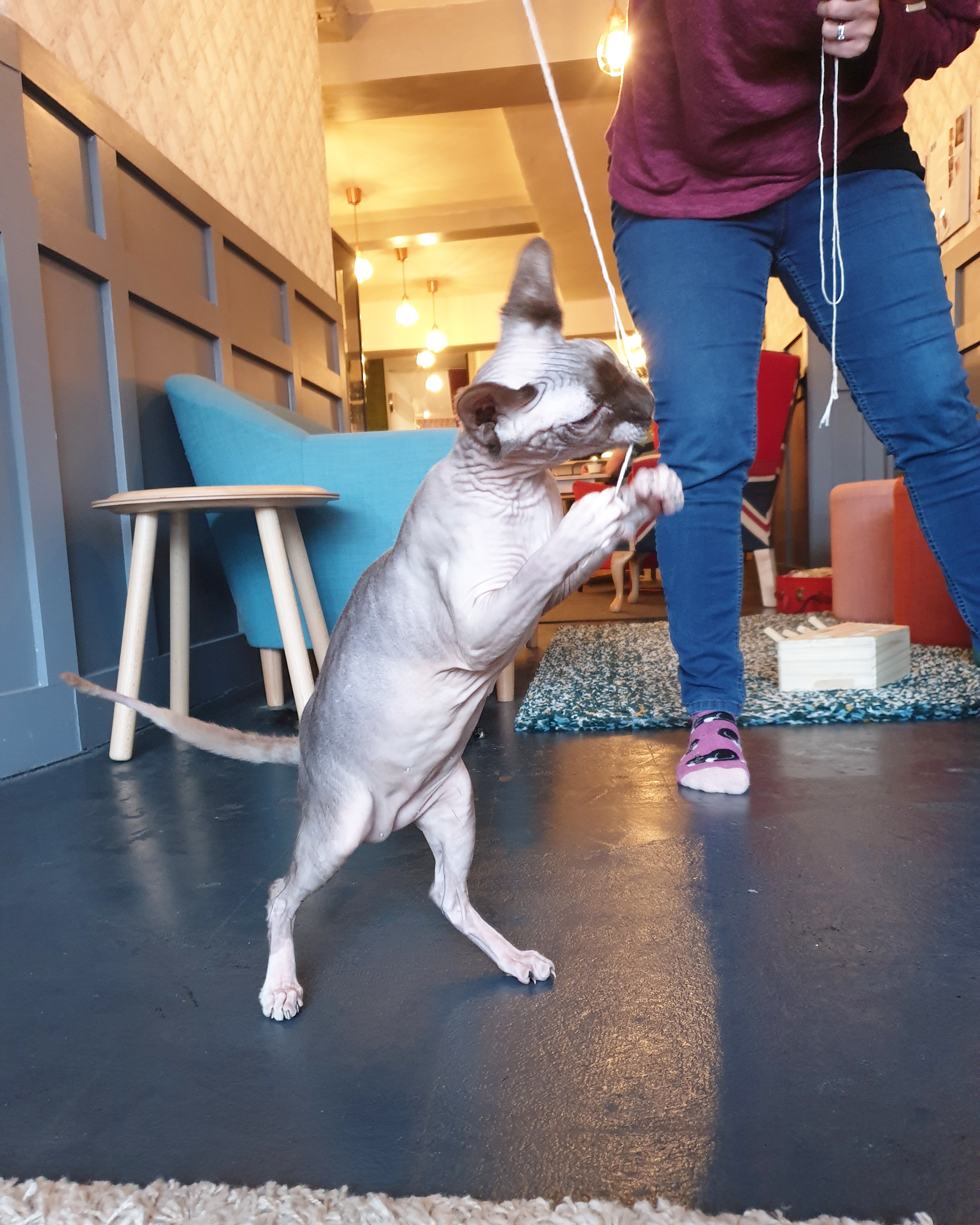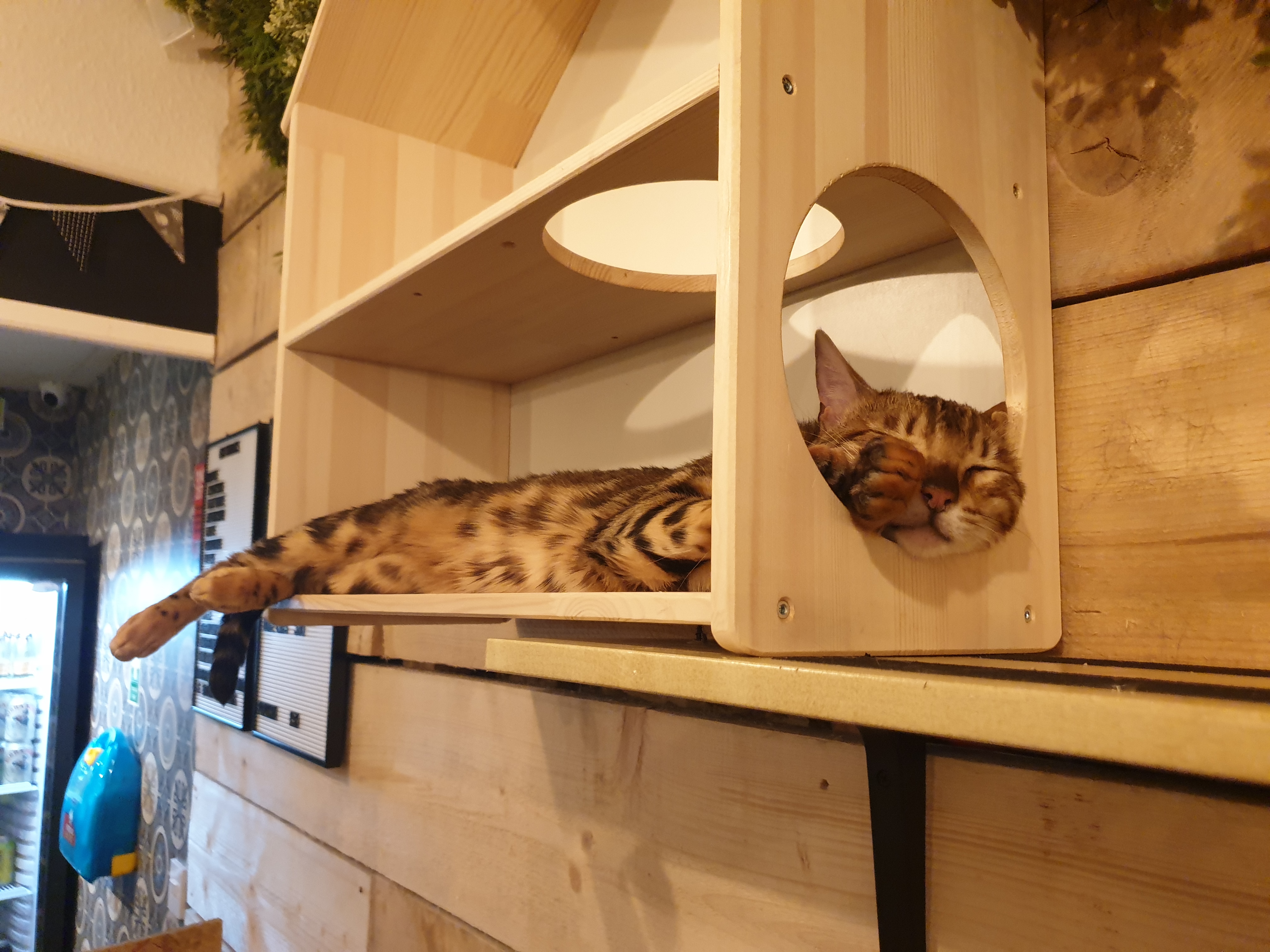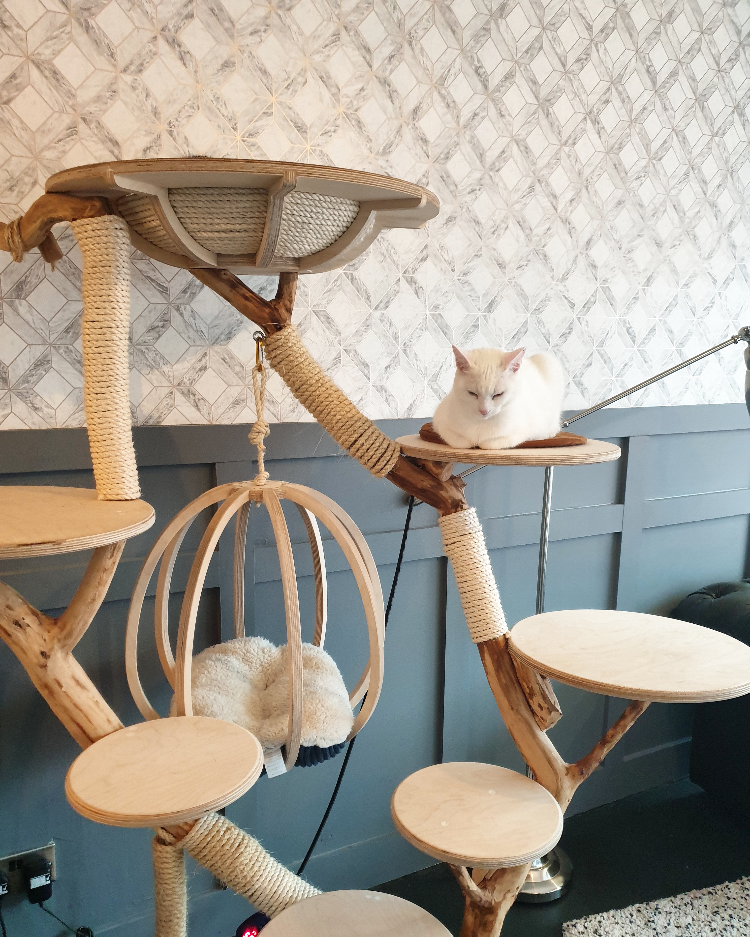 The Cafe is so spacious and full of different seats and sofas for the cats, as well as interactive toys, Cat Trees and shelving units with holes and hammocks.