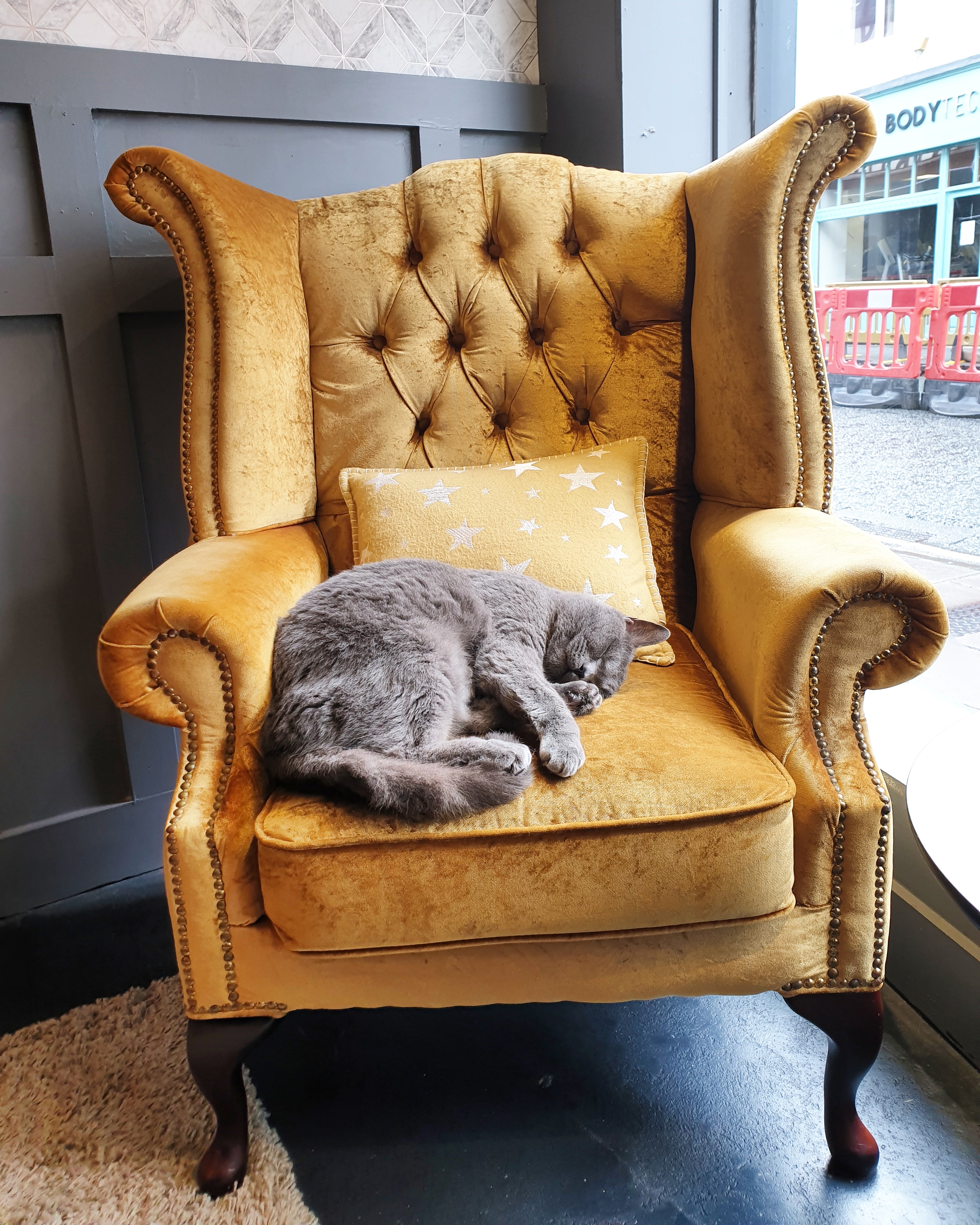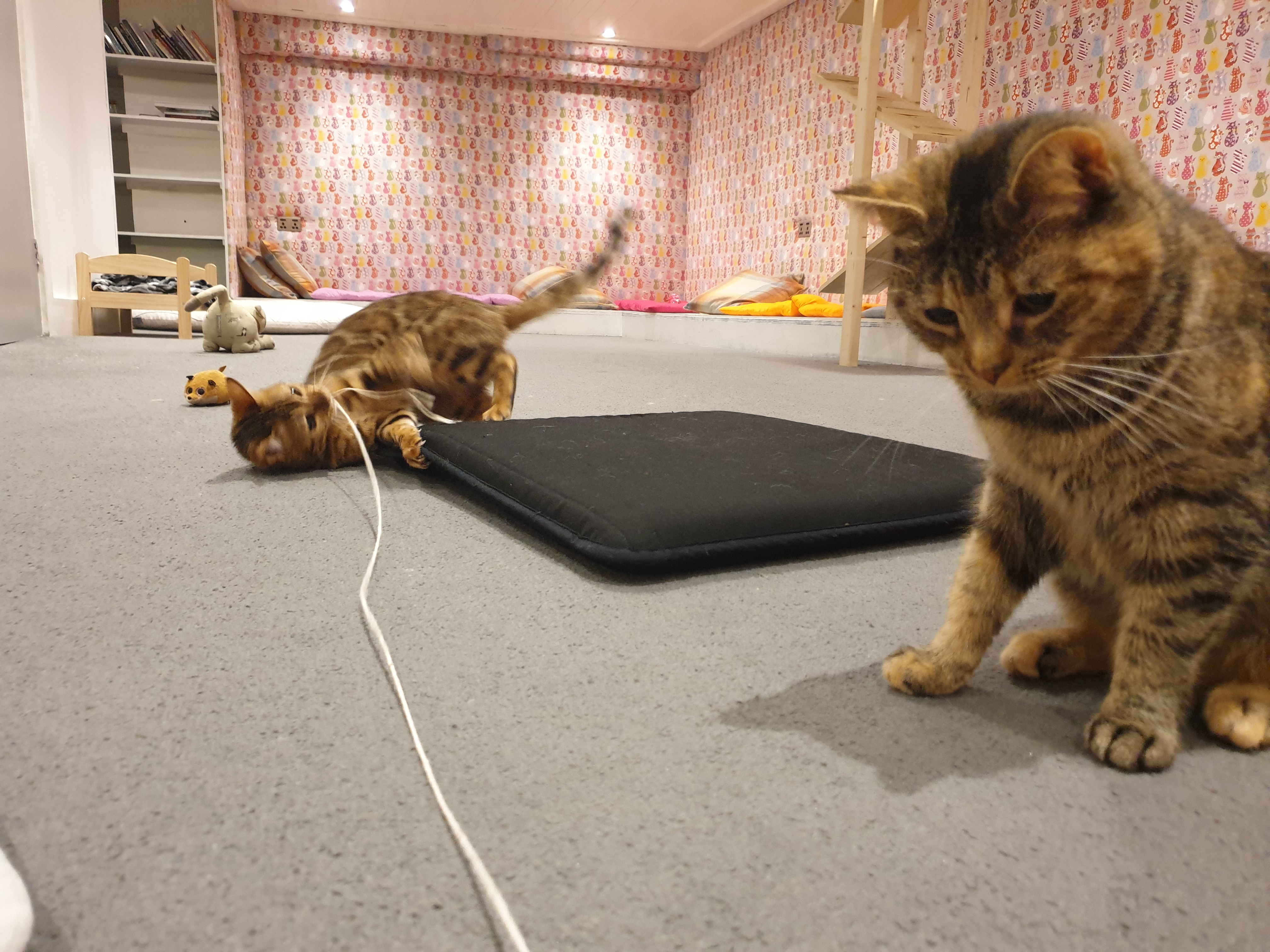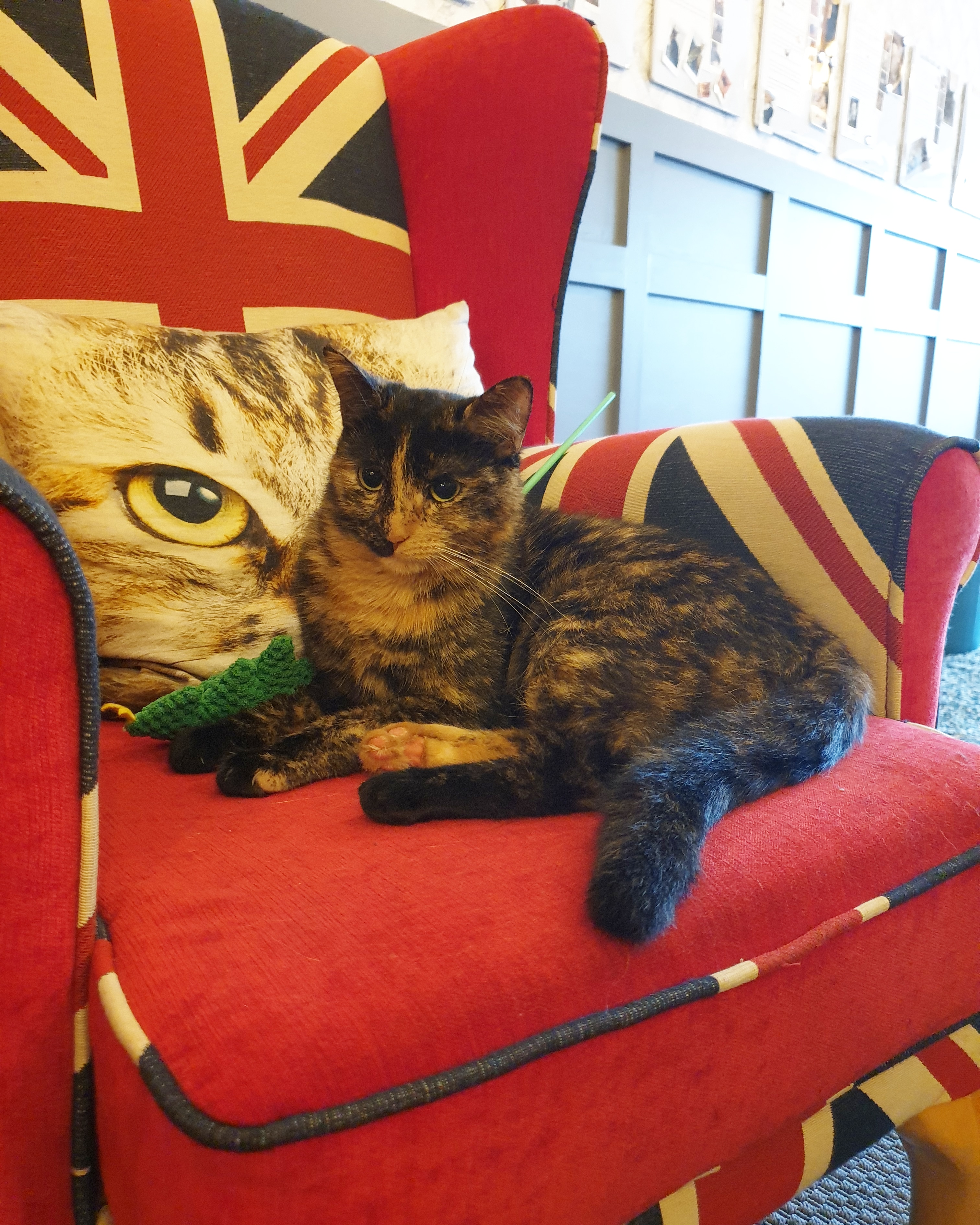 The Cafe is so spacious and full of different seats and sofas for the cats, as well as interactive toys, Cat Trees and shelving units with holes and hammocks.