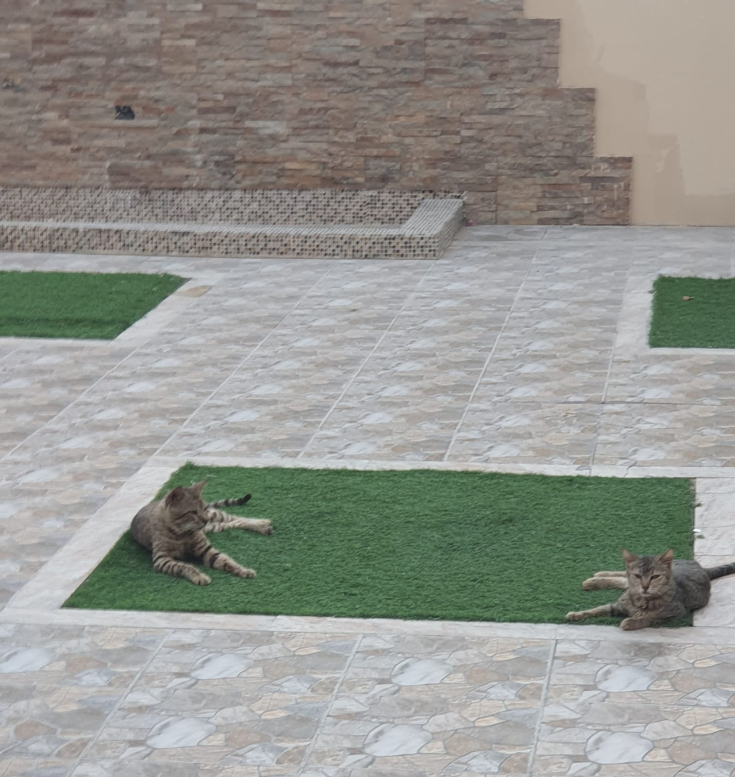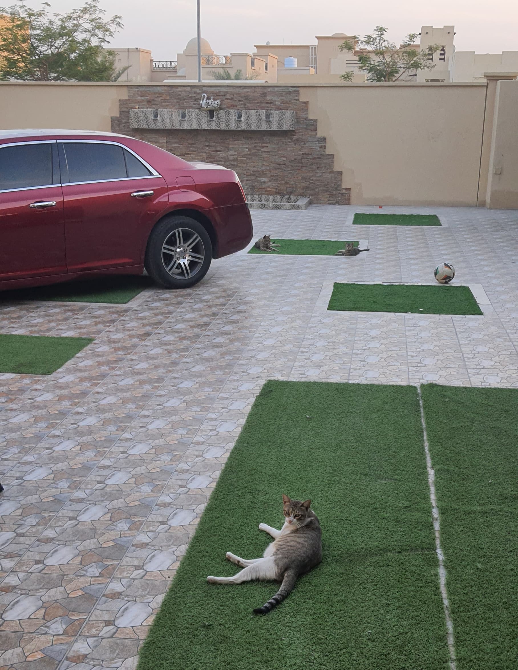 Unusual cool breeze on a cloudy day after a few days of very hot weather, for this time of the year, in Dubai, the cats took advantage and laid out in the front yard.