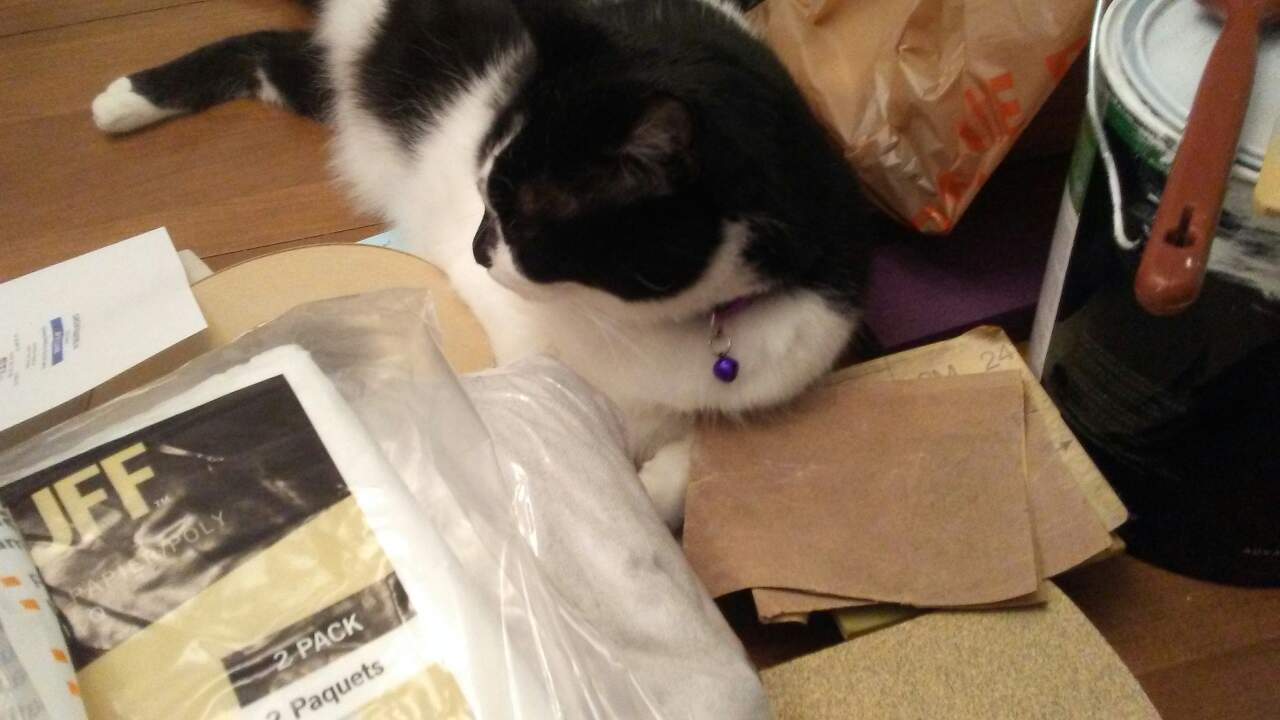 Feeny Likes Sandpaperfiberfrau (57)in #catsnaps • 6 years ago Look who is curious about the sanding and painting supplies on the table: Posted using Partiko Android #cats #dailypetphotography #partiko
