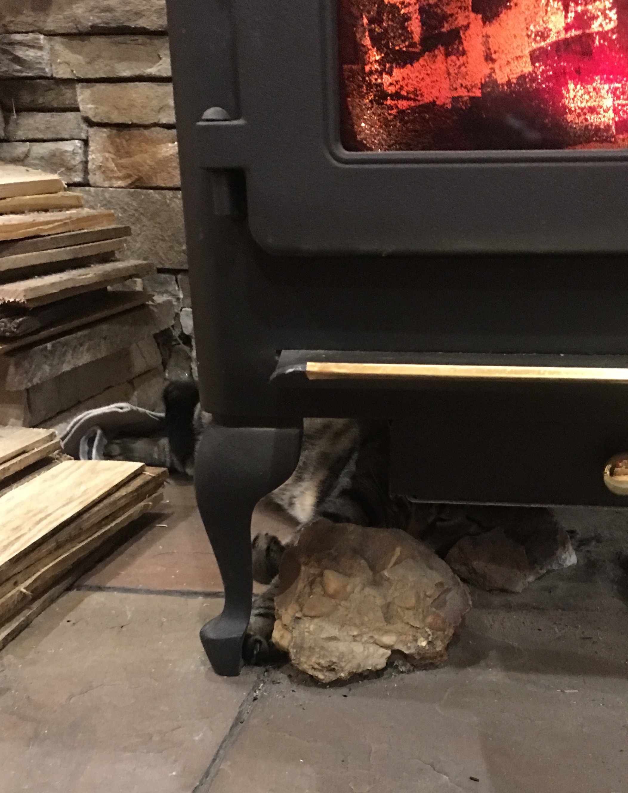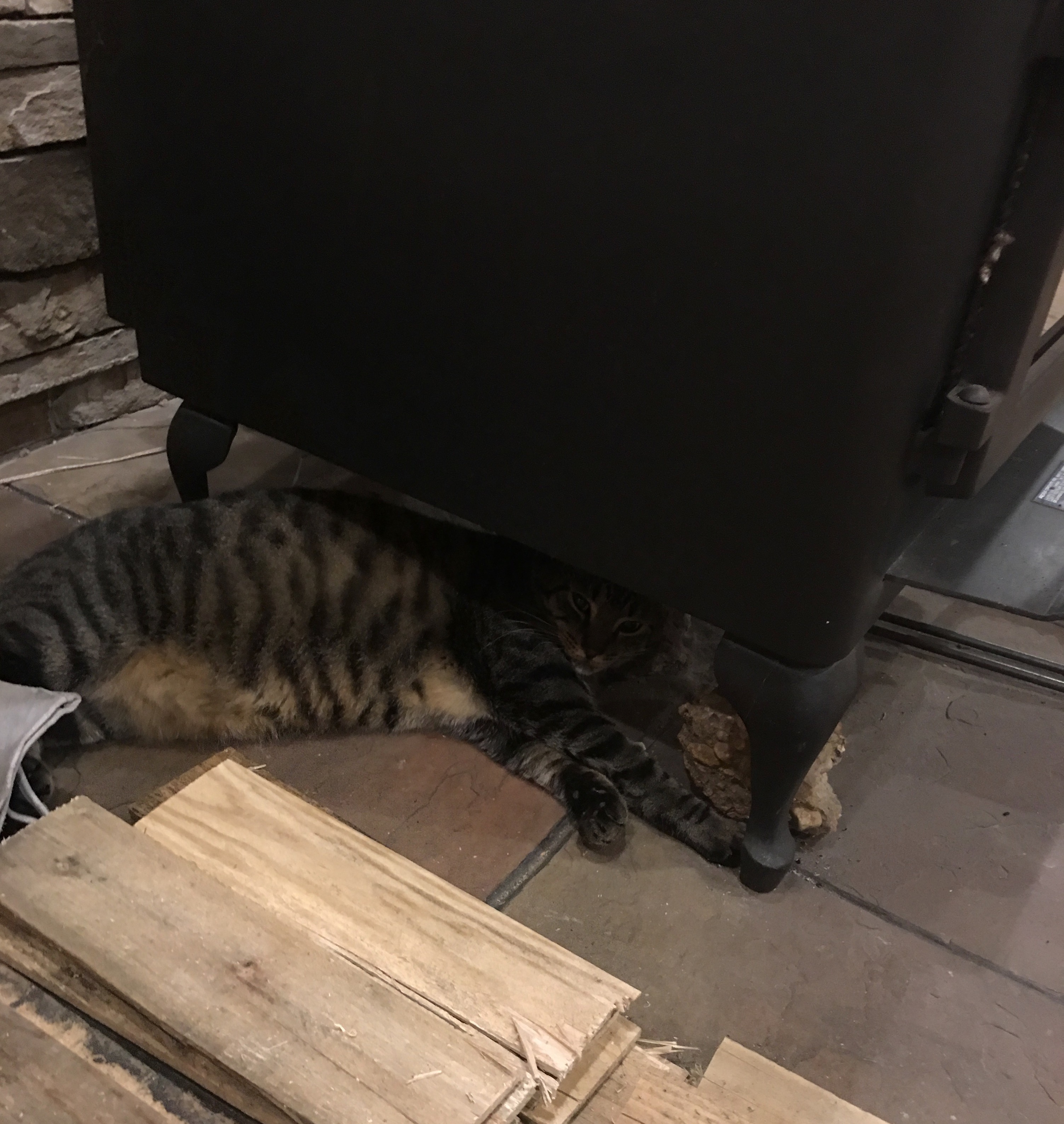 I just flexed my paw and tried to slide a bit further under the wood stove. Human moms.......they worry way too much! MEOW!!