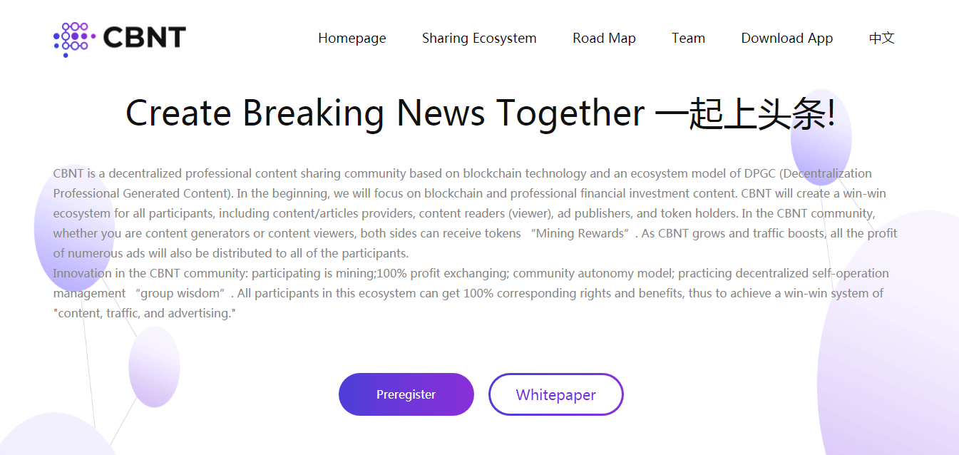 CBNT is a decentralized professional content sharing community based on blockchain technological know-how and an ecosystem mannequin of DPGC (Decentralization Professional Generated Content). In the beginning, we will focal point on blockchain and expert economic funding content. CBNT will create a win-win ecosystem for all participants, consisting of content/articles providers, content material readers (viewer), ad publishers, and token holders. In the CBNT community, whether or not you are content material generators or content material viewers, each aspects can receive tokens “Mining Rewards”. As CBNT grows and visitors boosts, all the profit of numerous commercials will also be disbursed to all of the participants.