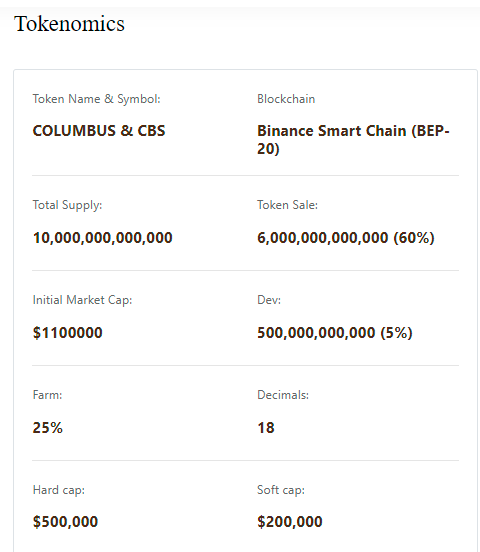The Columbus network will be driven by a token known as the COLUMBUS TOKEN (CBS), running on the Binance smart Chain BEP-20 and having a total supply of 10trillion with a reserve of 25%. At present, pre-sale is ongoing and participation is through the website.