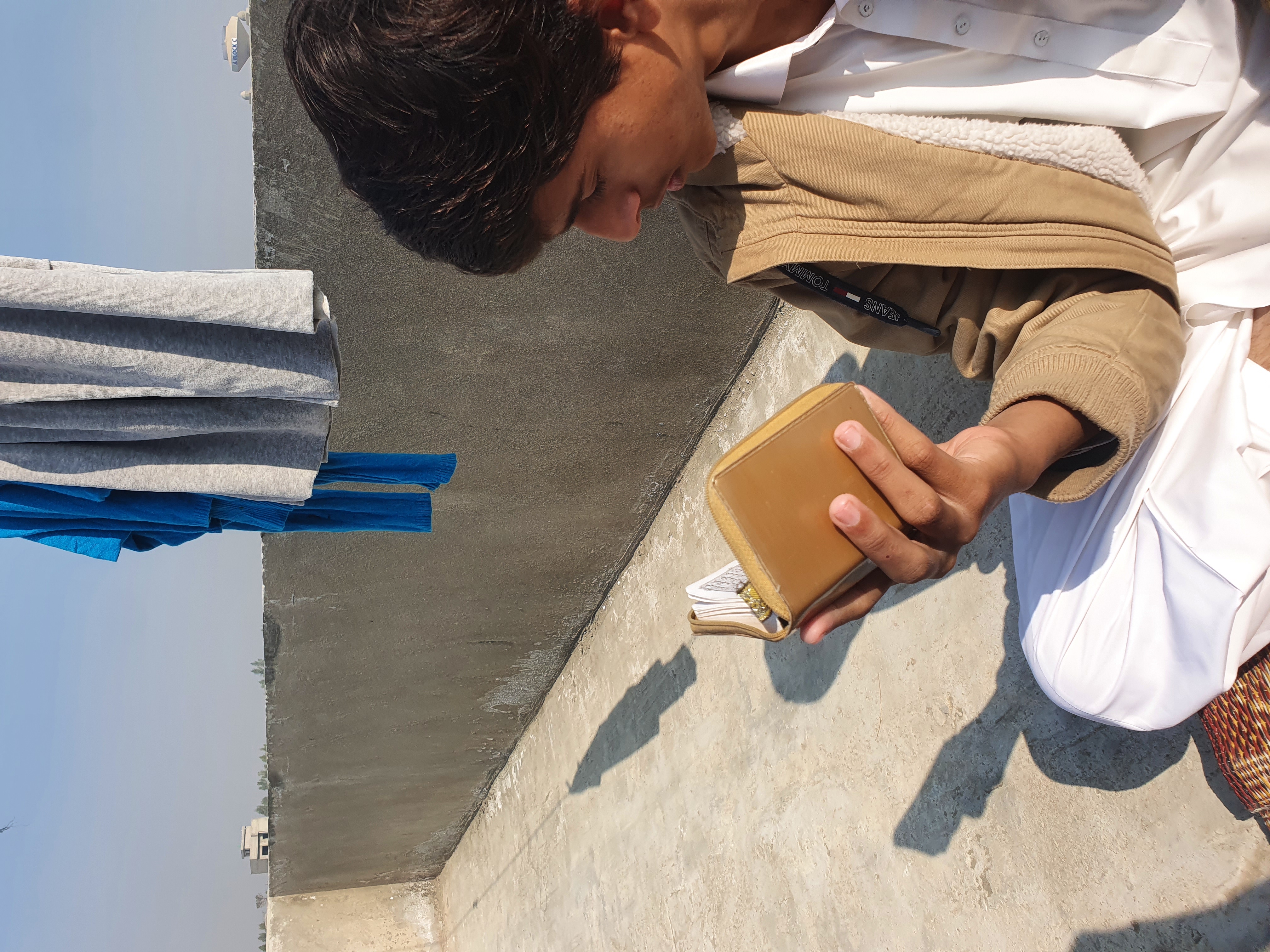 My son was sitting in the sun, reciting the Holy Quran, and his shadow was forming on the ground. I immediately took his picture and shared it with you.