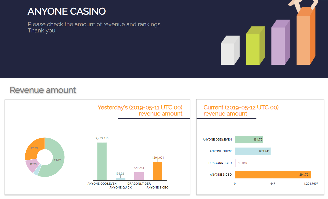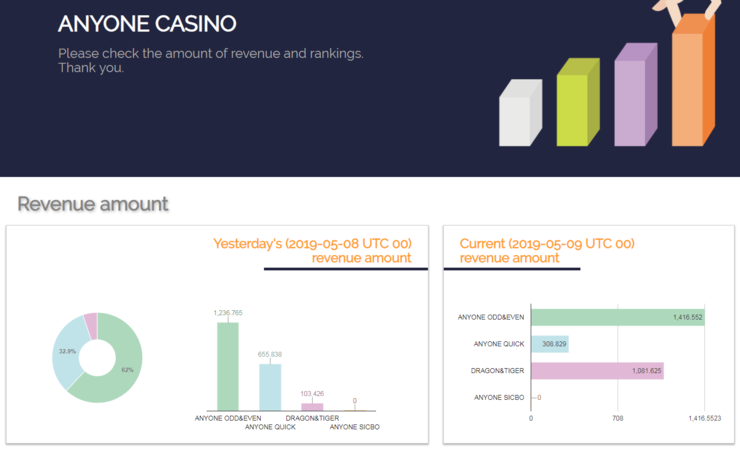 ANYONE은 애니원게임즈의 수익률을 투명하게 공개하고 있습니다.
