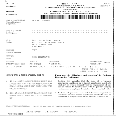 애니원은 홍콩과 벨리즈에 법인을 두고 있으며 해외 법인입니다.