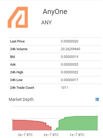 ANY/BTC, ANY/ETH 로 거래하실 수 있습니다.