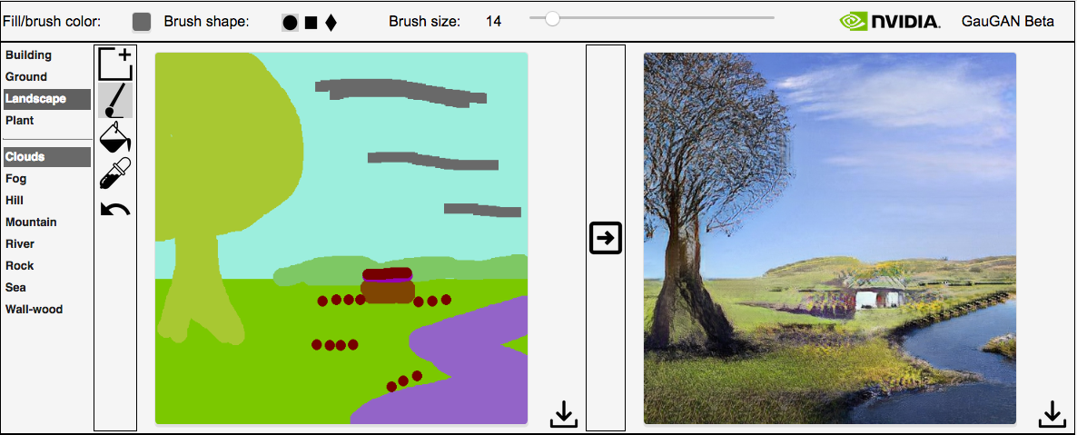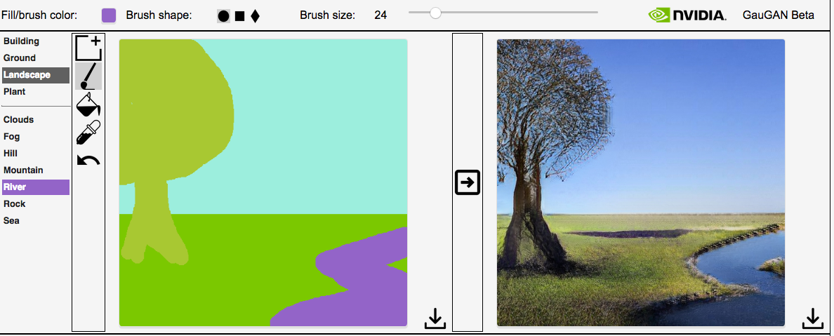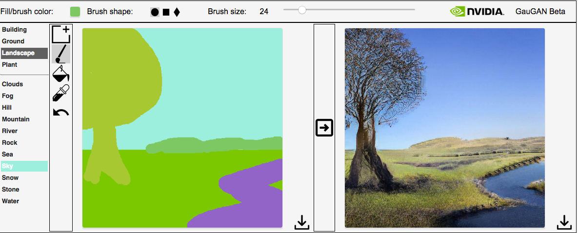 All photos were direct screenshots from the Nvidia Gaugan tool.