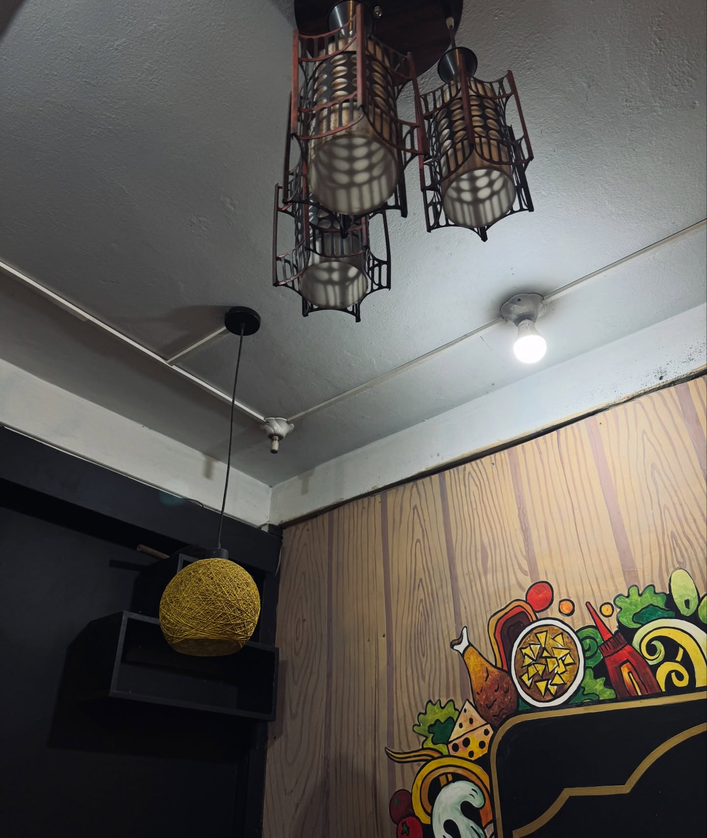 The chandeliers on the restaurant's ceiling are quite unique. The ball light made of jute thread in particular gave off a vintage vibe.