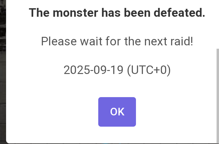 The monster was dead and I had to wait for the new monster to come, which was on 18/09/2025.
