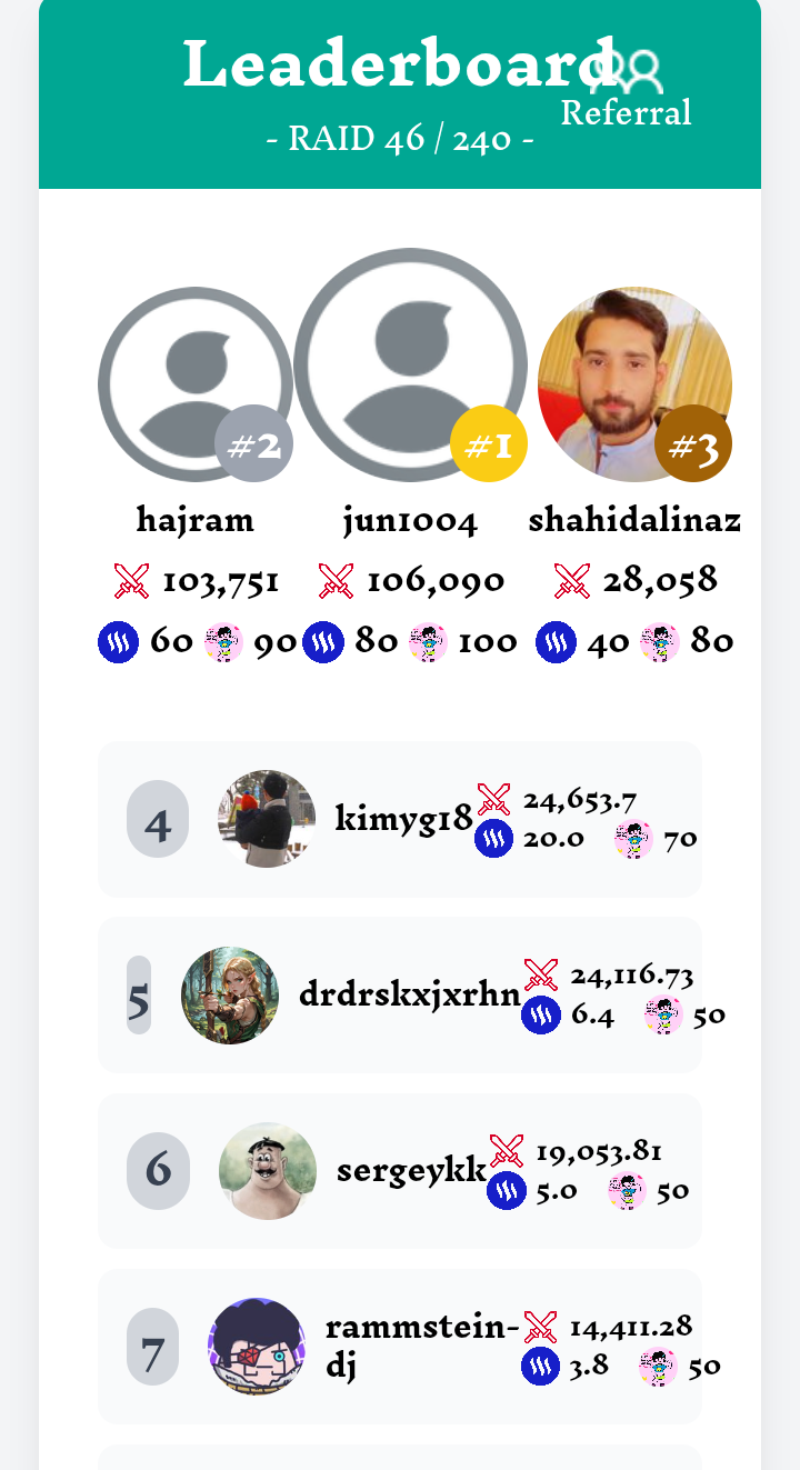 Now I opened the leaderboard option, and just as there are players going up and down every day, today too three players were at the top and the rest were in a line step by step. The more points they earn, the higher their rank goes.