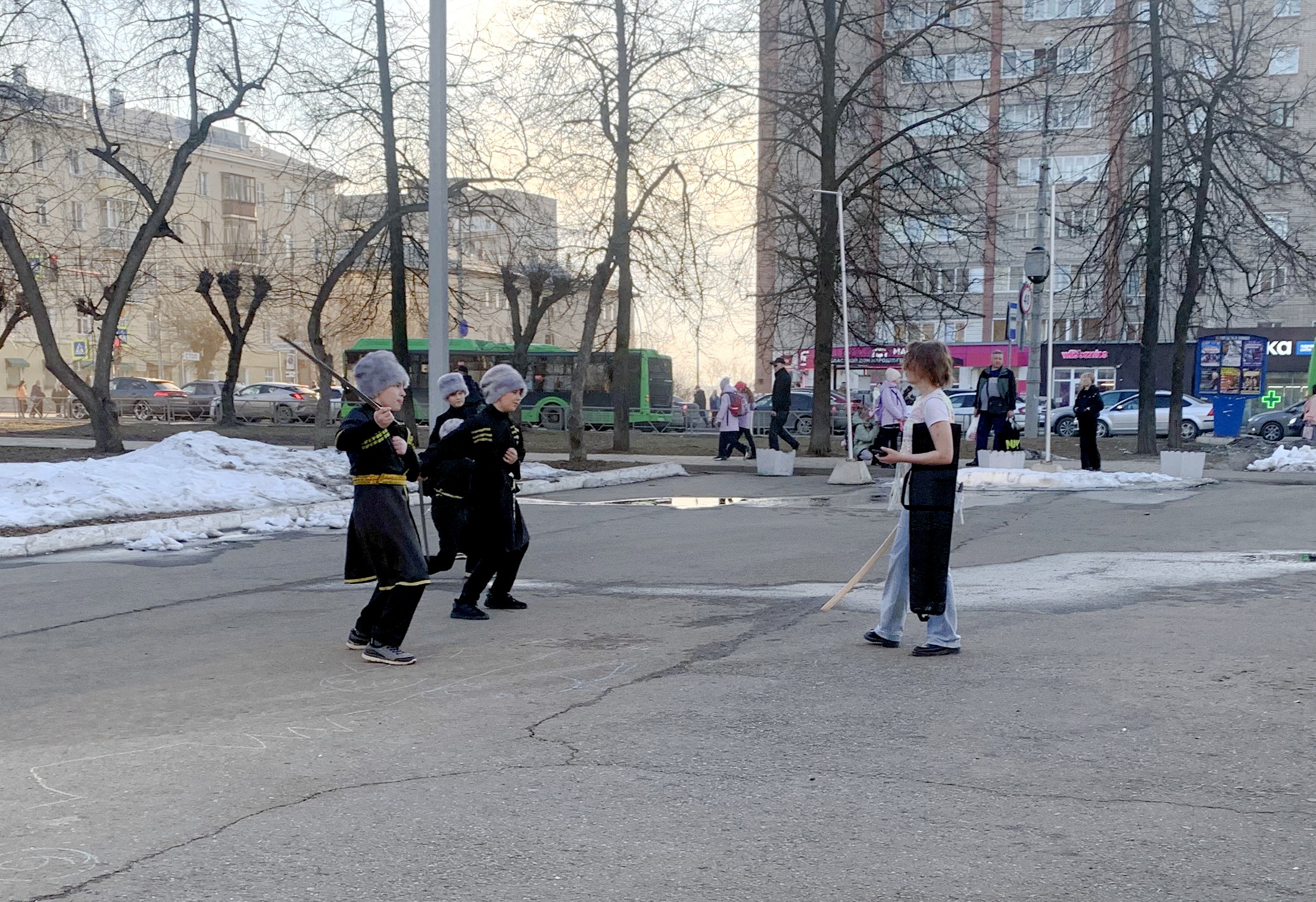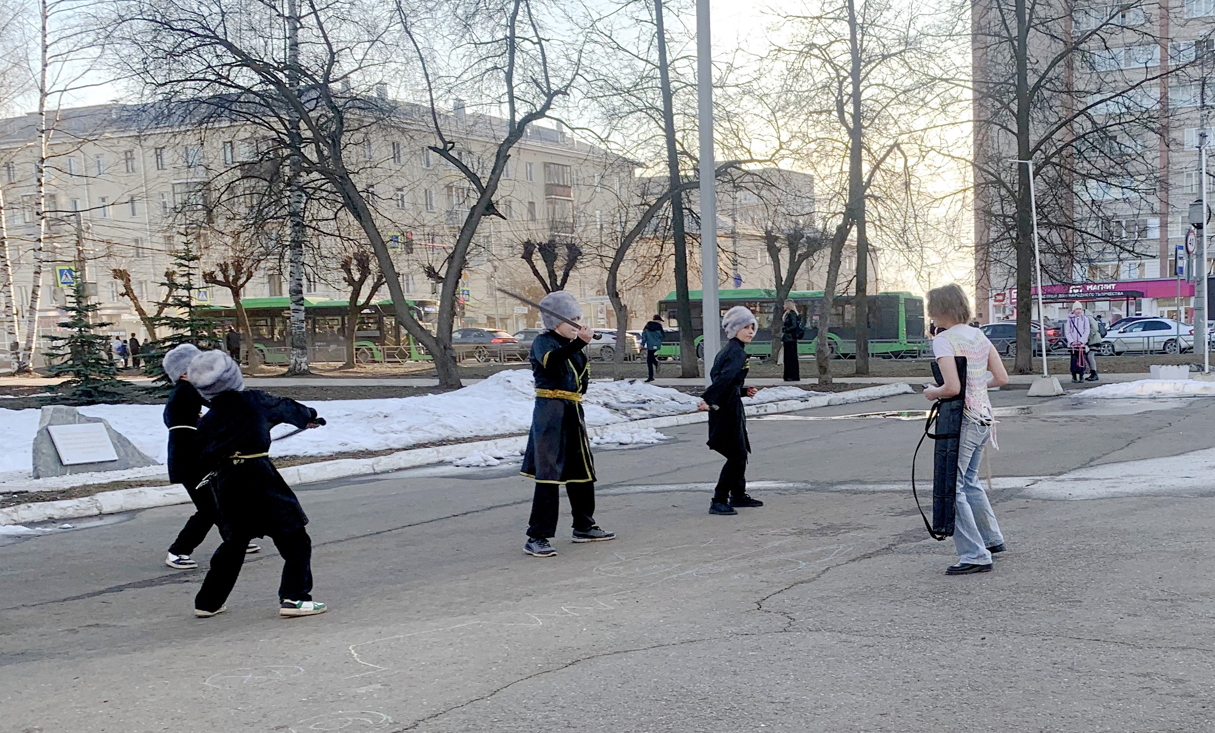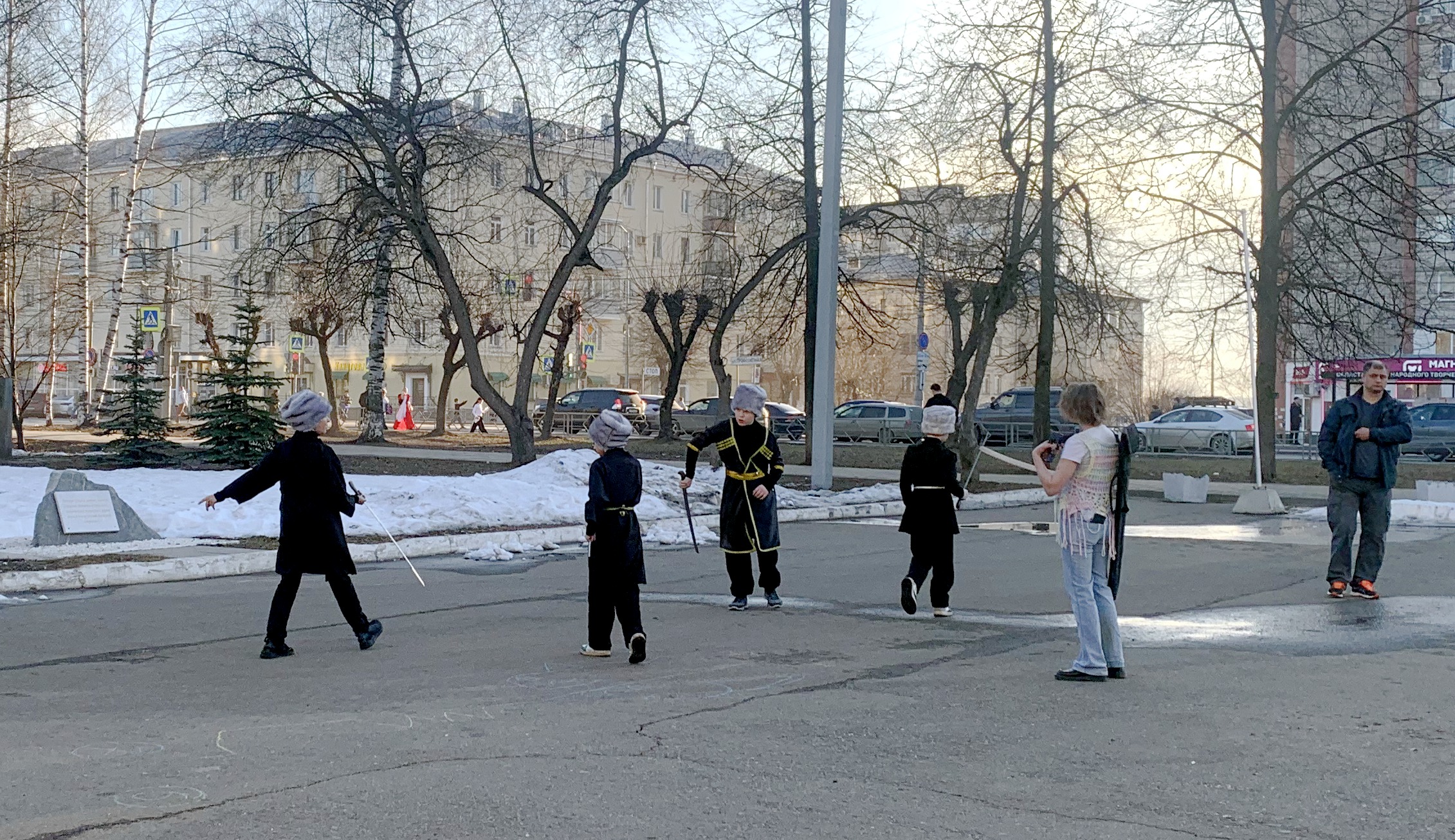 These guys and their supervisor went to the square in front of the Palace of Culture to practice again before the performance. They showed a Dagestani saber dance. Of course, not everything went well for the guys, but their performance looked very worthy and interesting!