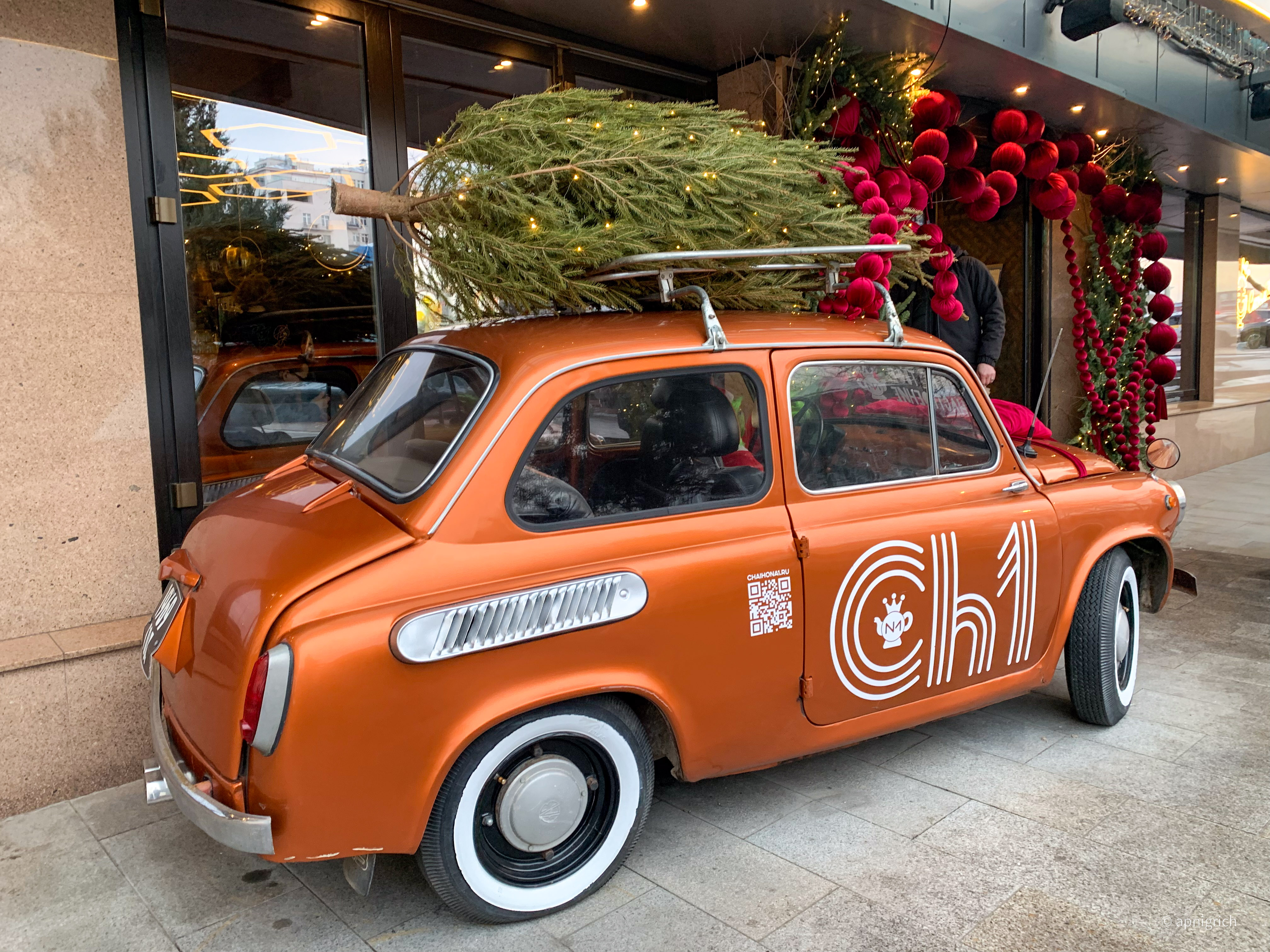 Why exactly "stole"? This takes us back to the history of this folk car. At the time of its creation, cutting down a Christmas tree in the forest rather than buying it on the market was the norm. And they just carried the Christmas tree on the roof of the car.