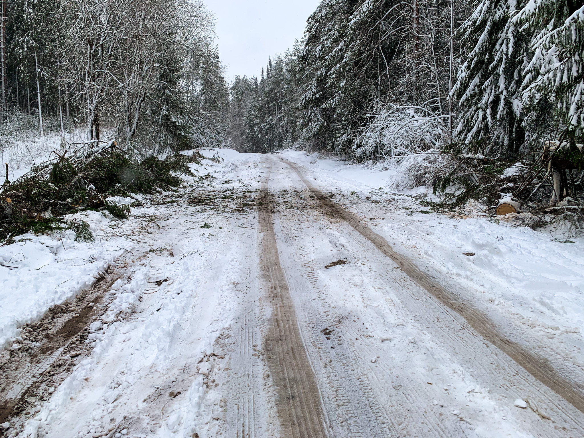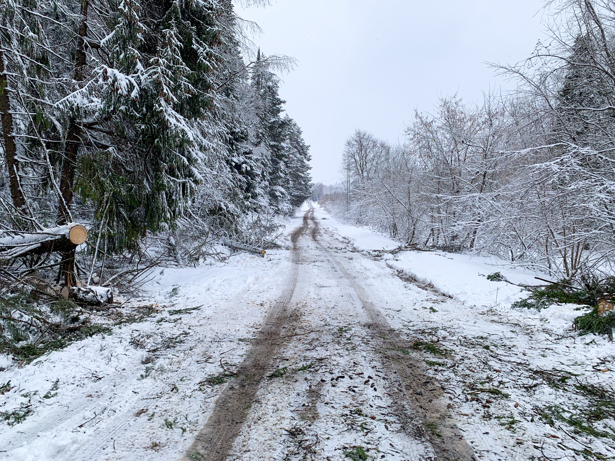 Heavy snow is dangerous not only for trees, but also for people. On Sunday morning, while walking, I discovered that a tree had fallen on the road to a nearby village. I must say that there is some kind of anomaly in this place this year - a dozen trees have already fallen, and some of them are on the road.