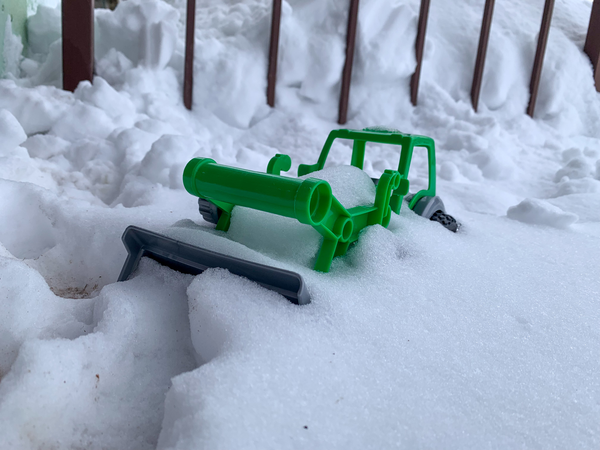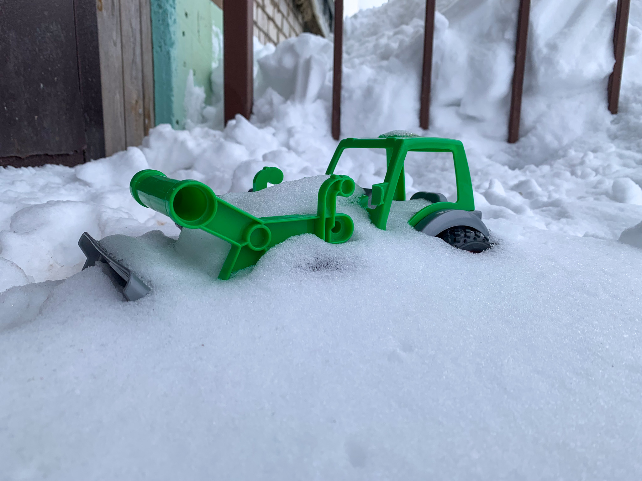 No, it wasn't this tractor that cleared the snow from the road. This green tractor belongs to my grandson, who went home to Moscow with his parents, but the tractor remained behind.