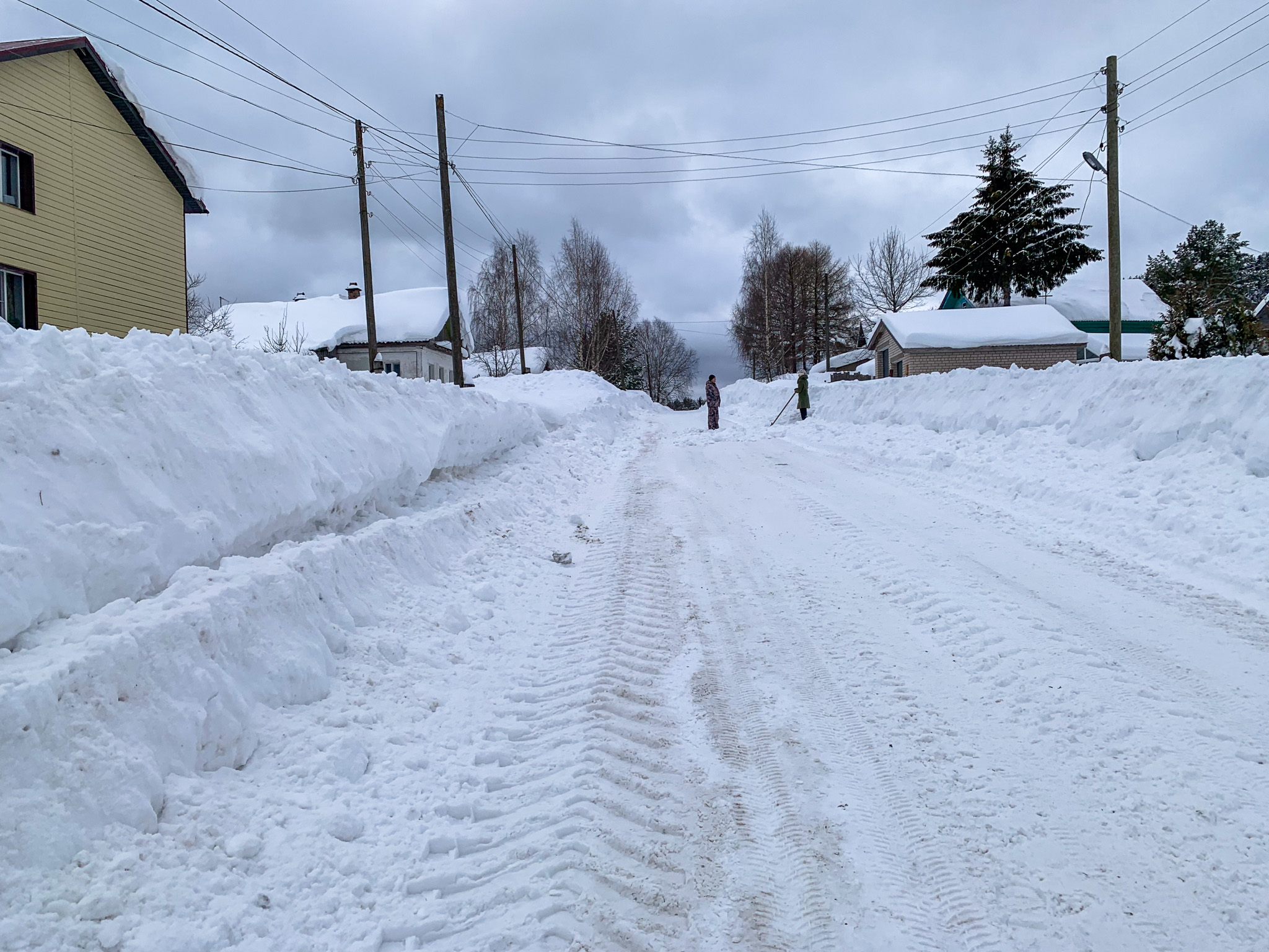 A few days ago, I was talking about the large amount of snow near my relative's house. Of course, there is also a lot of snow near my house. For almost a week, the road in our village was not cleared, and oncoming vehicles were unable to pass. However, a couple of days ago, a large tractor widened the road, of course, blocking my access to the parking area near my house.