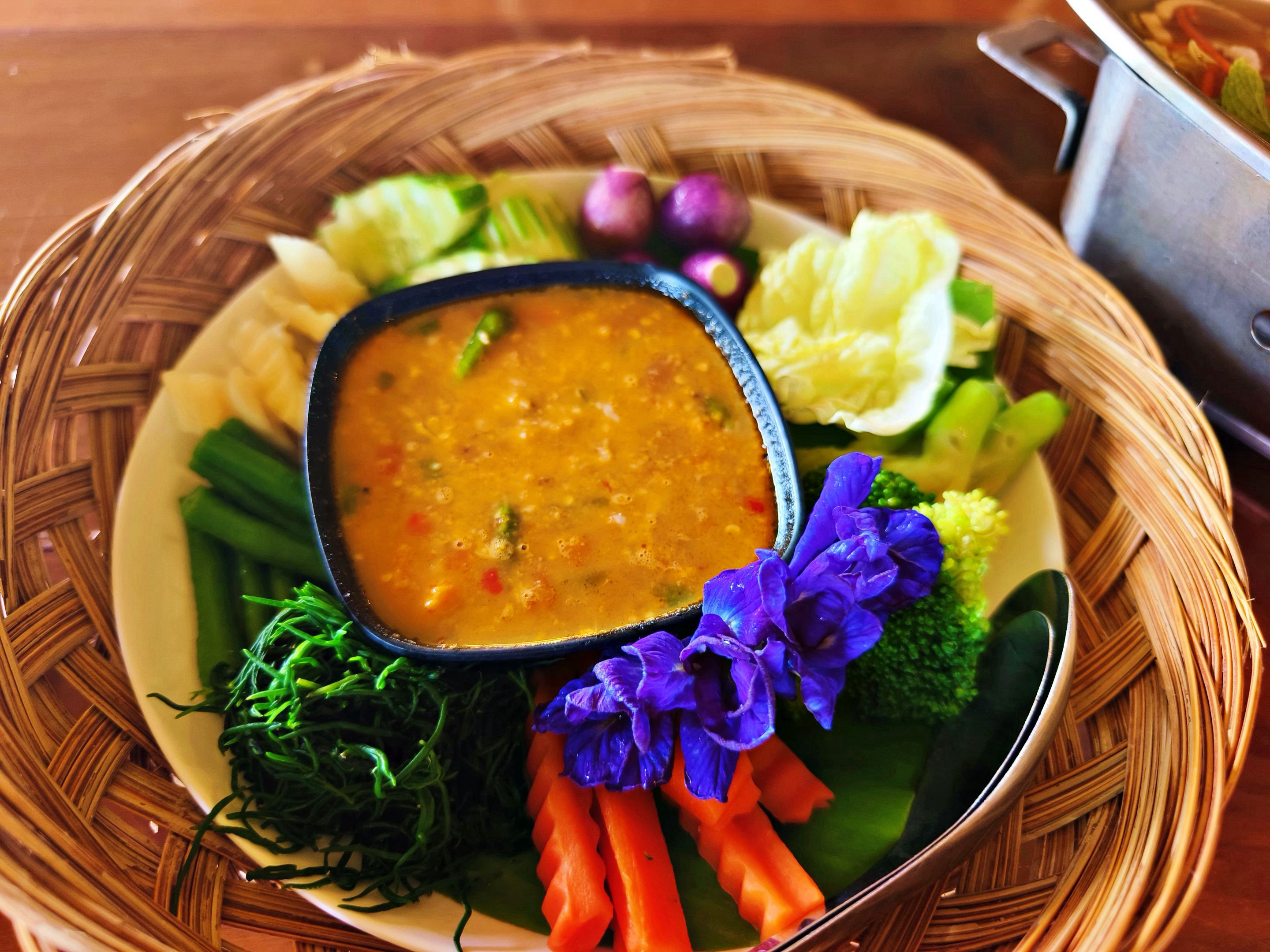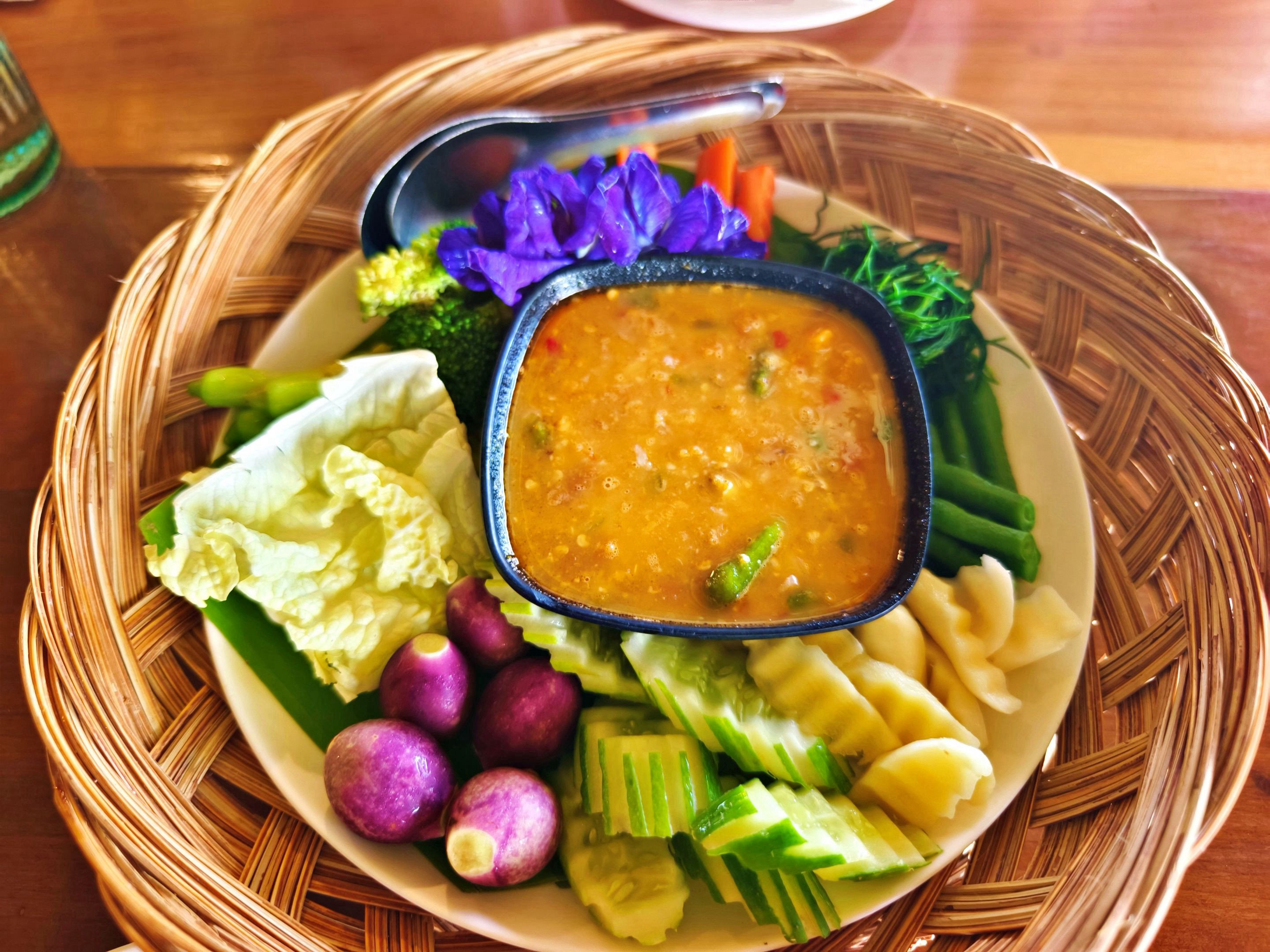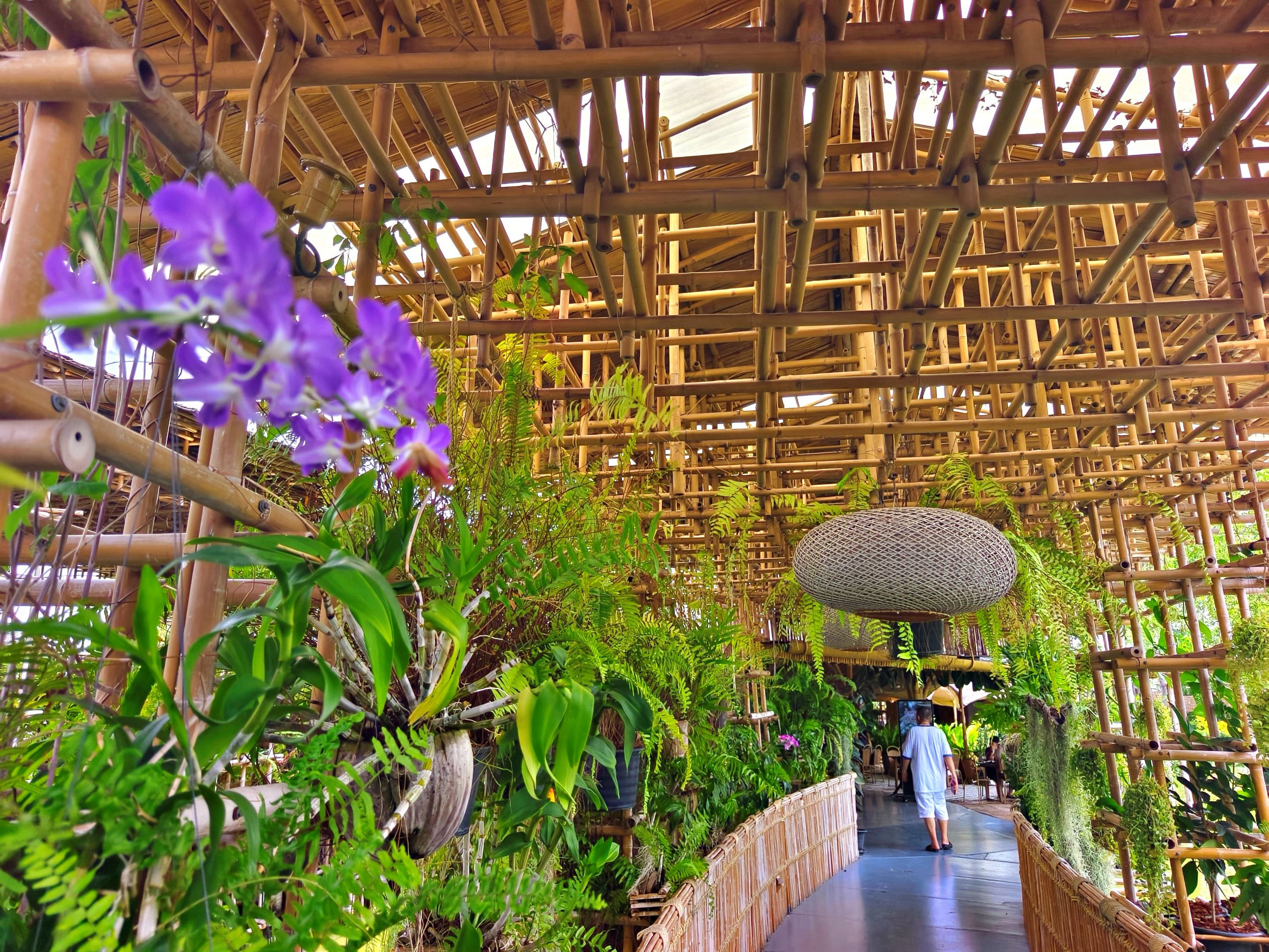The restaurant truly lived up to my friend’s recommendation — Khao Mai Pla Man is beautifully designed and full of character. The entire place is built from bamboo, giving it a warm, rustic charm. Even the walkways are decorated with bamboo patterns that make you feel like you’re stepping into a little nature-inspired world. Along the path, there are lovely ferns and orchids, adding a soft and colorful touch to the scenery. Of course, I couldn’t resist stopping to take a few photos along the way. 📸🌿