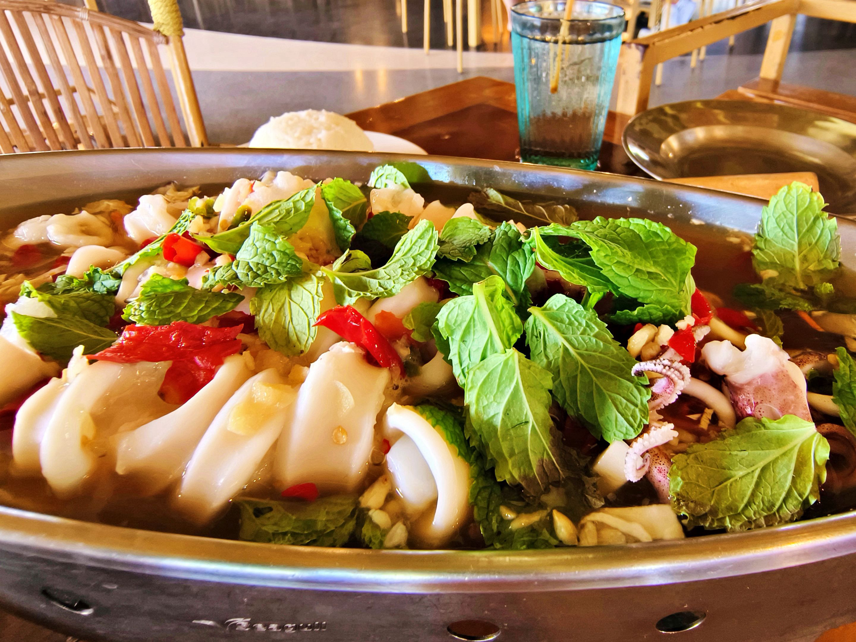 Next came the steamed squid with lime — and once again, it was my friend’s recommendation. The squid was huge, almost too big for its own good. For me, the texture turned out way too chewy… honestly, it felt like I was chewing on a piece of car tire. Not exactly the most pleasant bite. 🦑😂