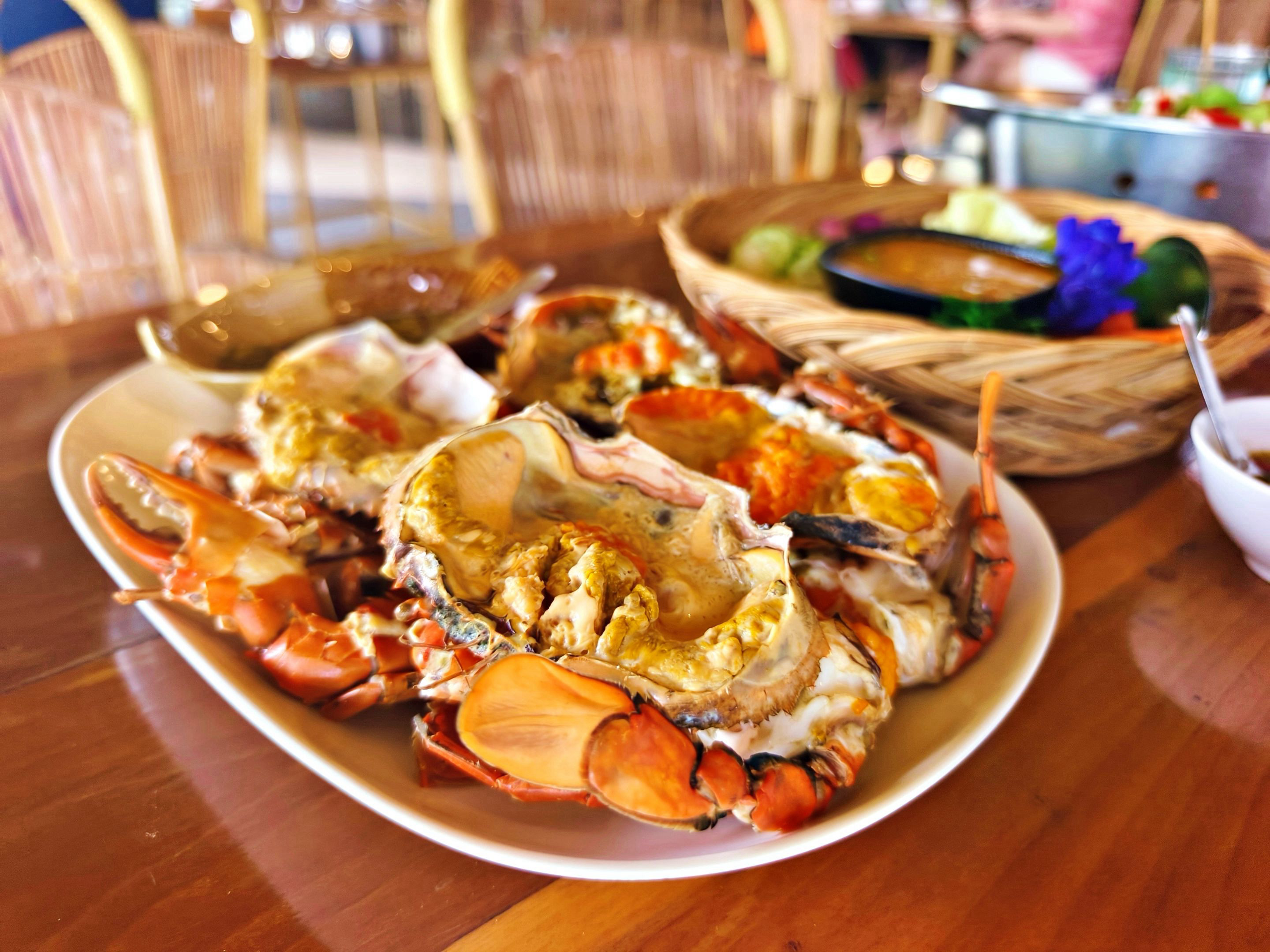 First up was the steamed crab with fresh milk — a large crab topped with creamy milk and then steamed until tender. It came with a spicy seafood dipping sauce on the side. For me, the taste was… just okay. Nothing too exciting, honestly. Luckily, I didn’t order too much of it, because the price was on the higher side. 🦀🥛💸