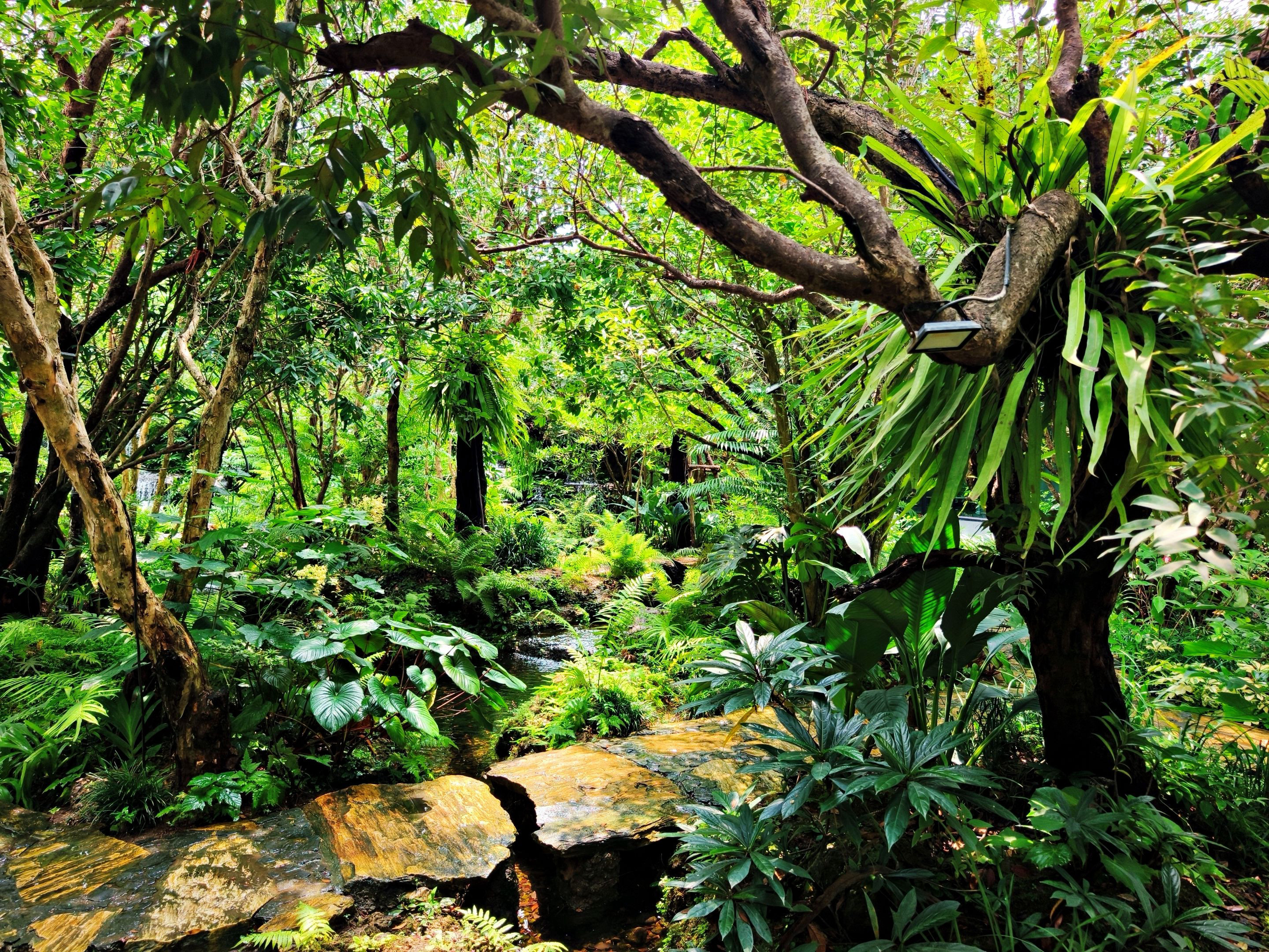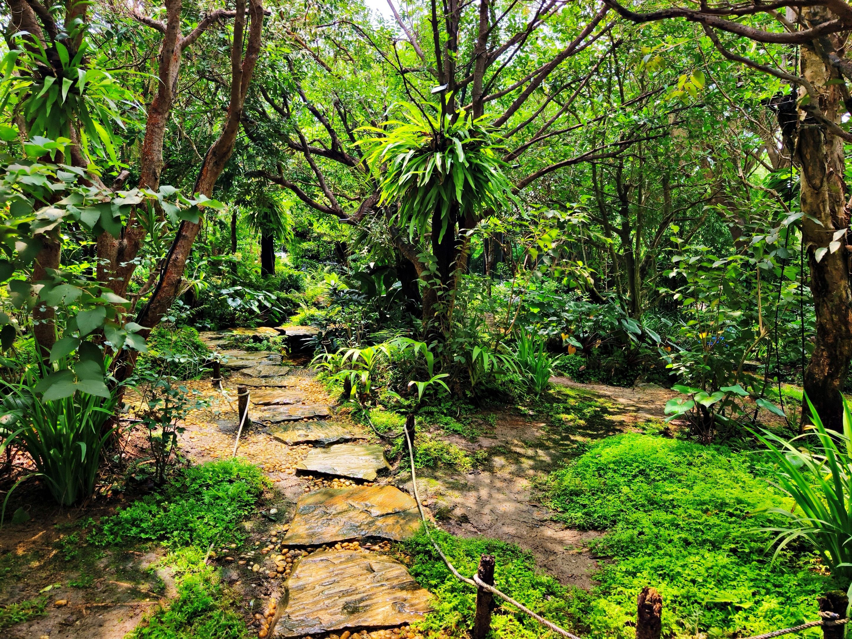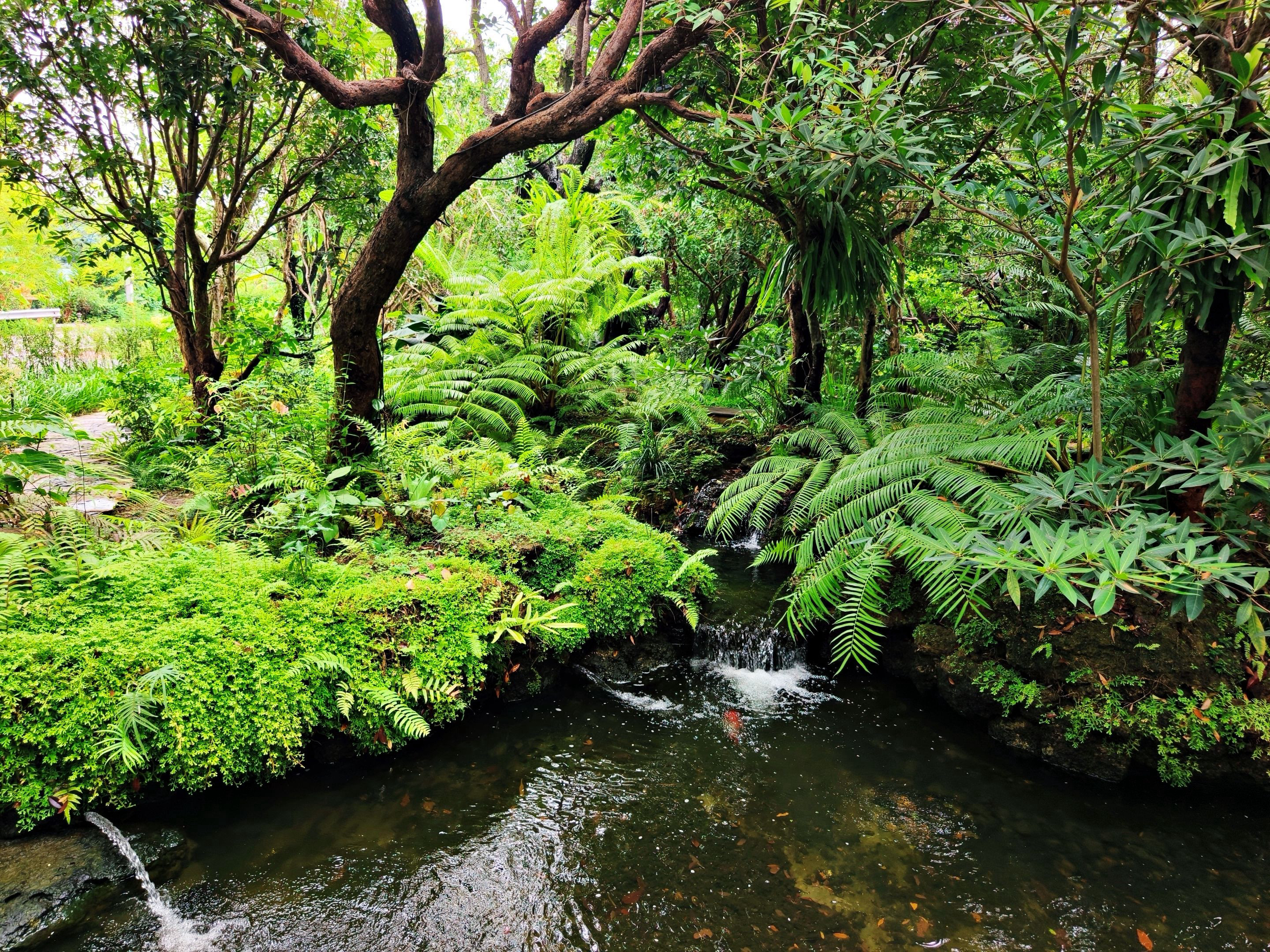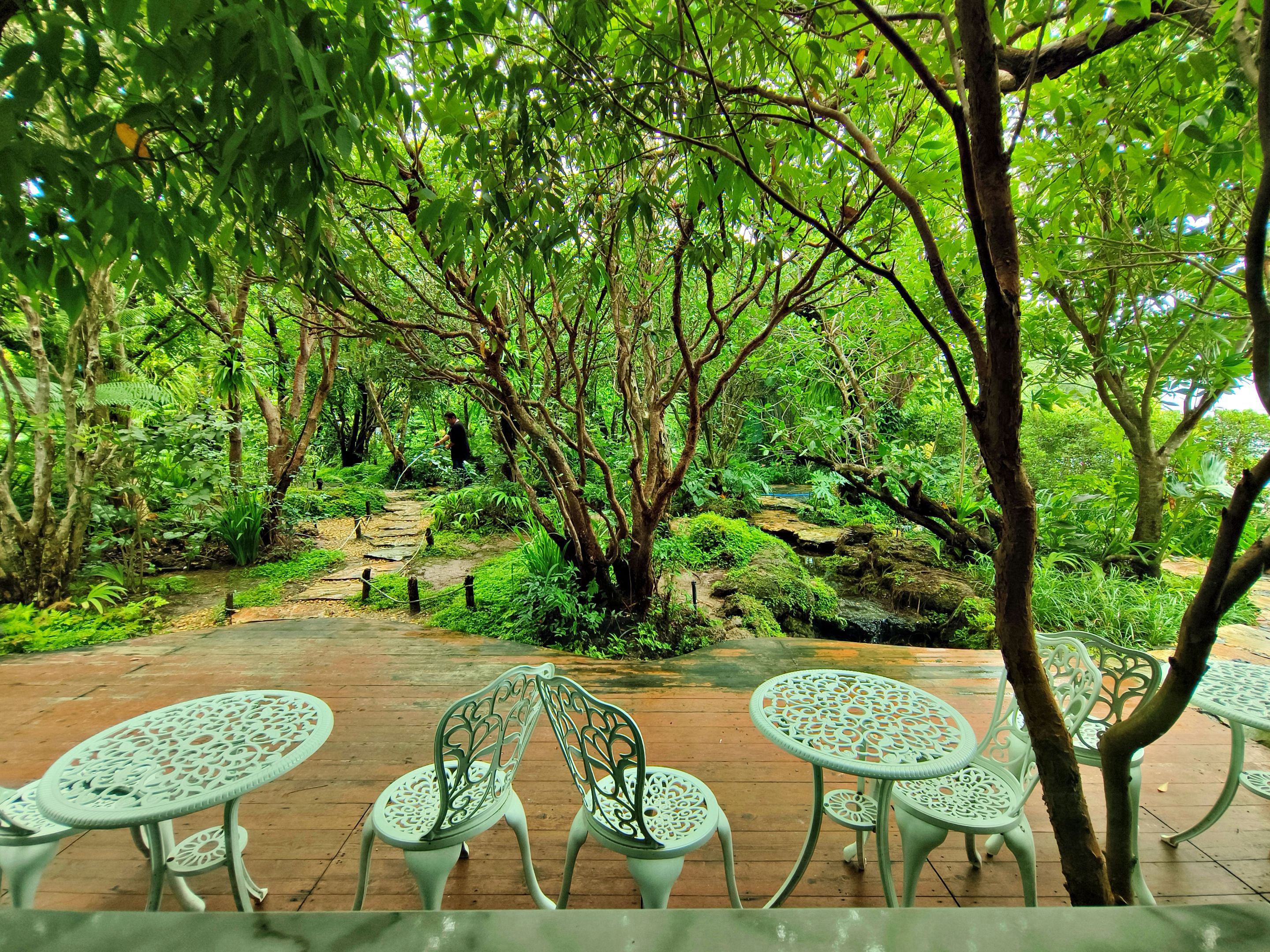What I love most about this place is its lush and shady atmosphere. There’s a spacious garden with a small man-made waterfall set right in the middle, surrounded by tall trees and beautiful ferns that make it feel as natural as possible. It even has that forest-like vibe, with butterflies fluttering around the leaves—such a peaceful and delightful sight to watch. 🦋🌳💧