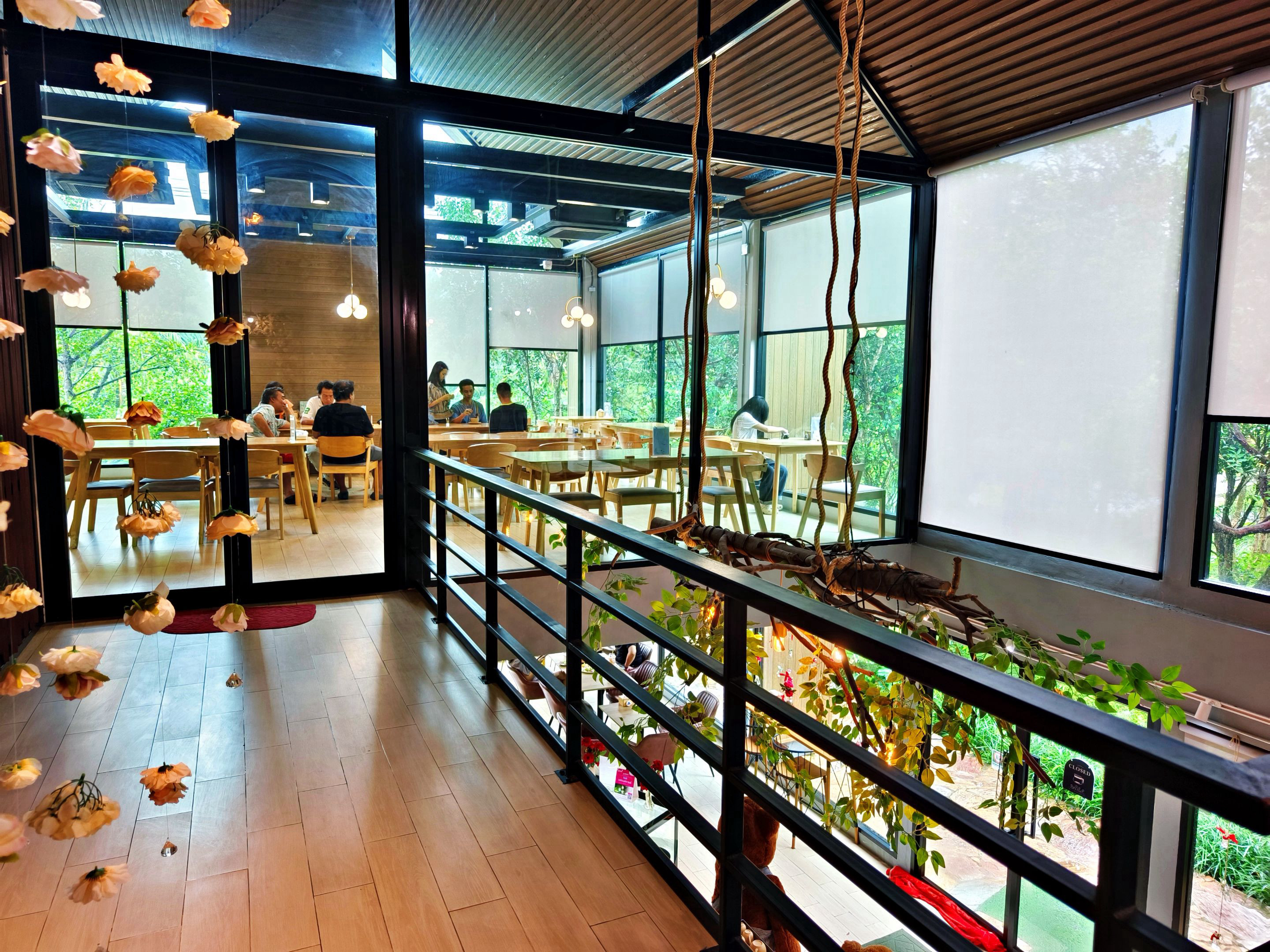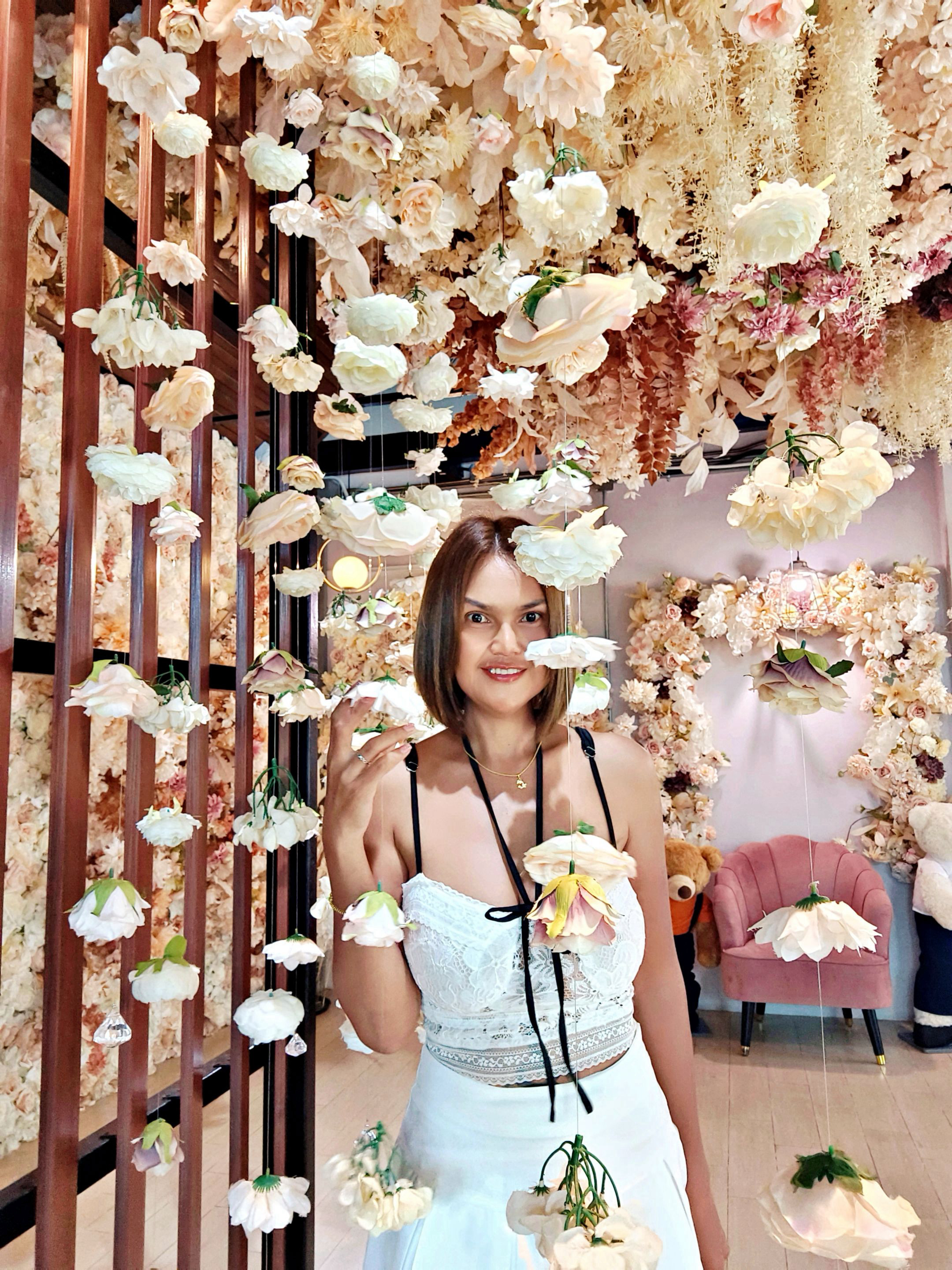 After finishing my meal, I went to pay the bill, but I still wanted to capture a few more photos. The café has two floors, and I hadn’t yet explored the second one. Upstairs, the space is decorated with beautiful artificial flowers, creating another charming corner for pictures. I spent some time taking photos before heading back to my hotel, as I needed to leave early the next morning. 🌸📸🏨