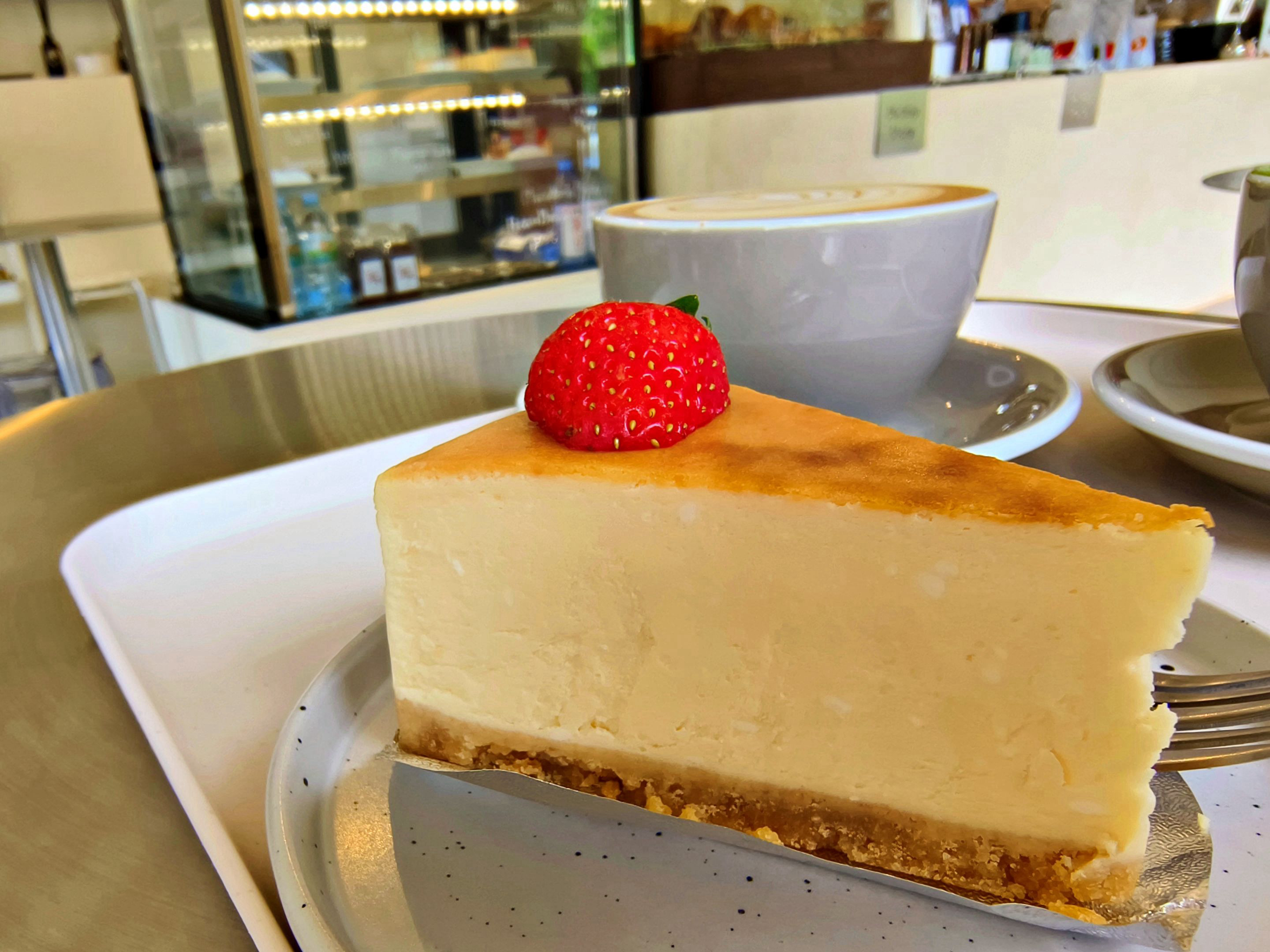 Right next to the coffee machine, there was a glass display filled with a tempting selection of freshly baked pastries and cakes. The sight of croissants, slices of cake, and other sweet treats instantly made the café feel even more inviting. 🥐🍰