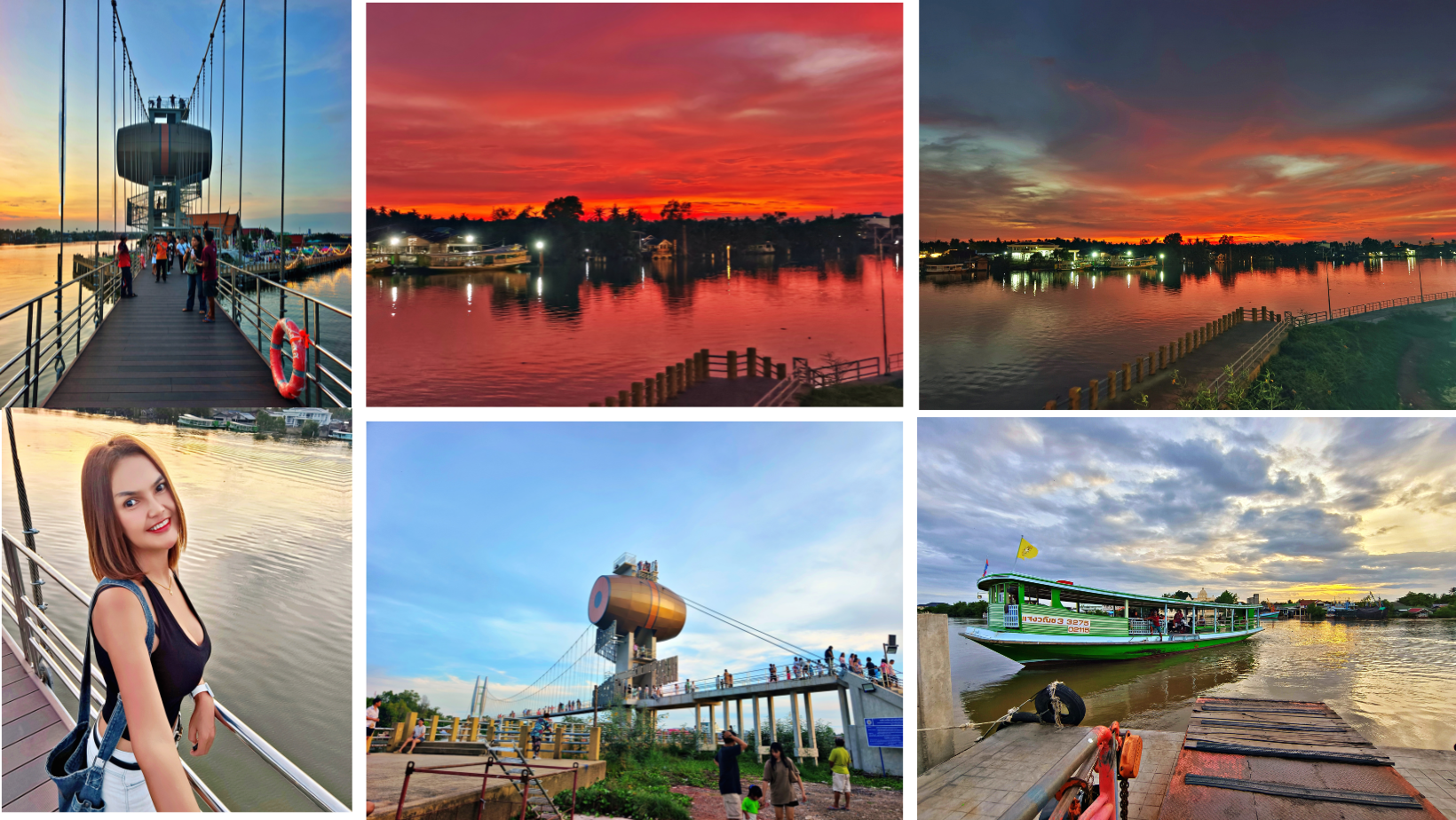 Today, Iโd love to take you along with me to enjoy a peaceful evening by the Mae Klong River โ the lifeline of the communities in this region. A new suspension bridge now stretches across the river, becoming a fresh landmark for visitors. And let me tell