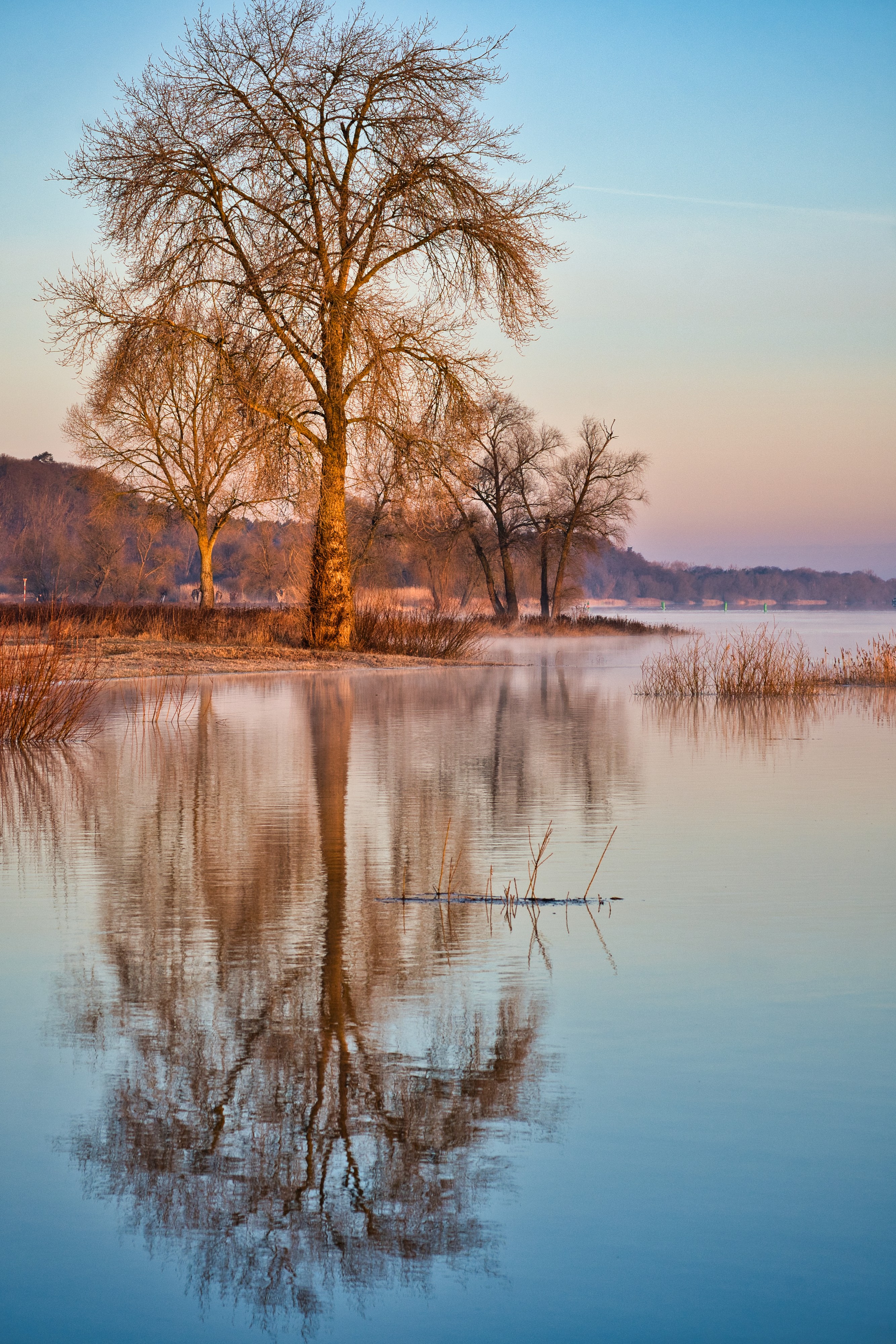 Experience the tranquil magic of the dawn's first light. As the sun begins its gentle ascent, the world is bathed in a soft, golden glow that breathes life and warmth into the landscape. This moment of 'Morgenstimmung' captures the perfect harmony of peace and renewal, where the crisp morning air and the quiet beauty of nature invite you to pause and embrace the new day with a refreshed spirit.