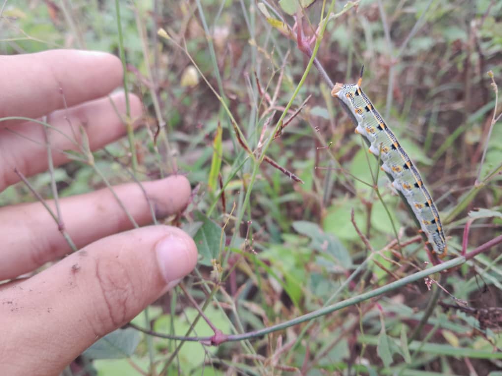 Agrius cingulata, commonly known as spring, is the name given to some caterpillars that are currently appearing as a pest in a field near where I live.