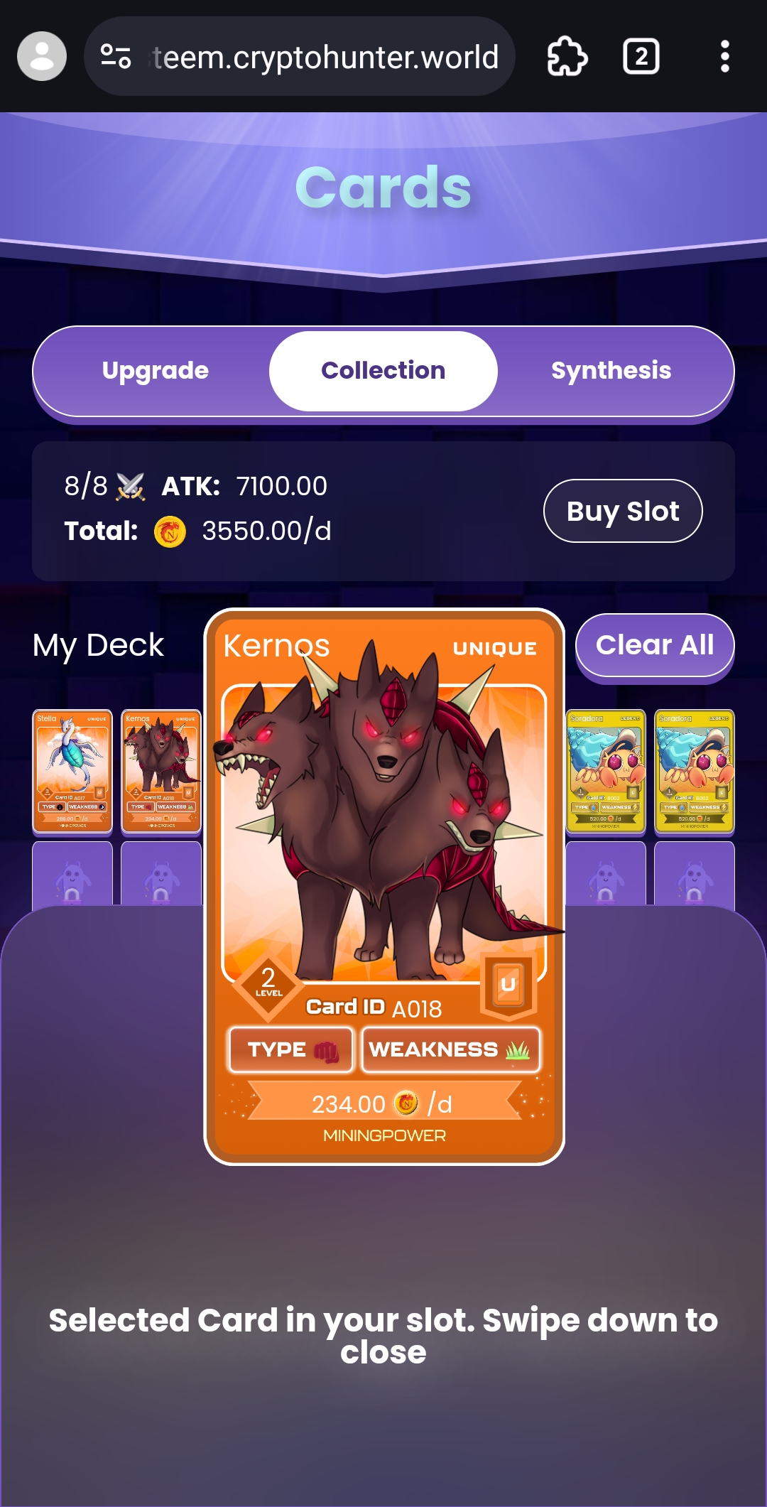 Next, I slotted in a poor Level 2 Unique card – Kernos,