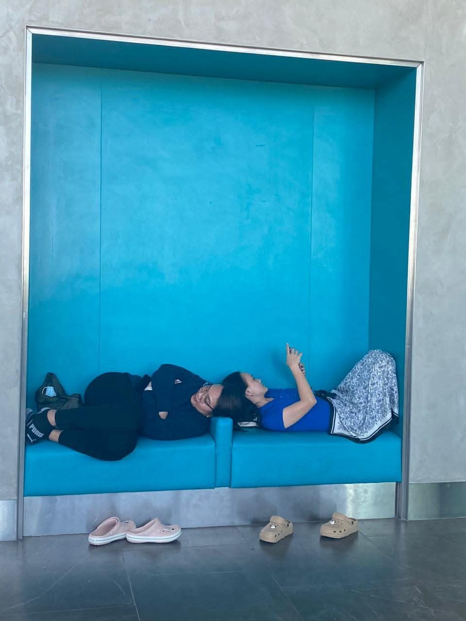 We're early to arrive in Clark Airport, so we have to wait for our flight. It took us hours, and my daughter and niece took some sleep. I'm with them as well as my sister, the mother of my niece.