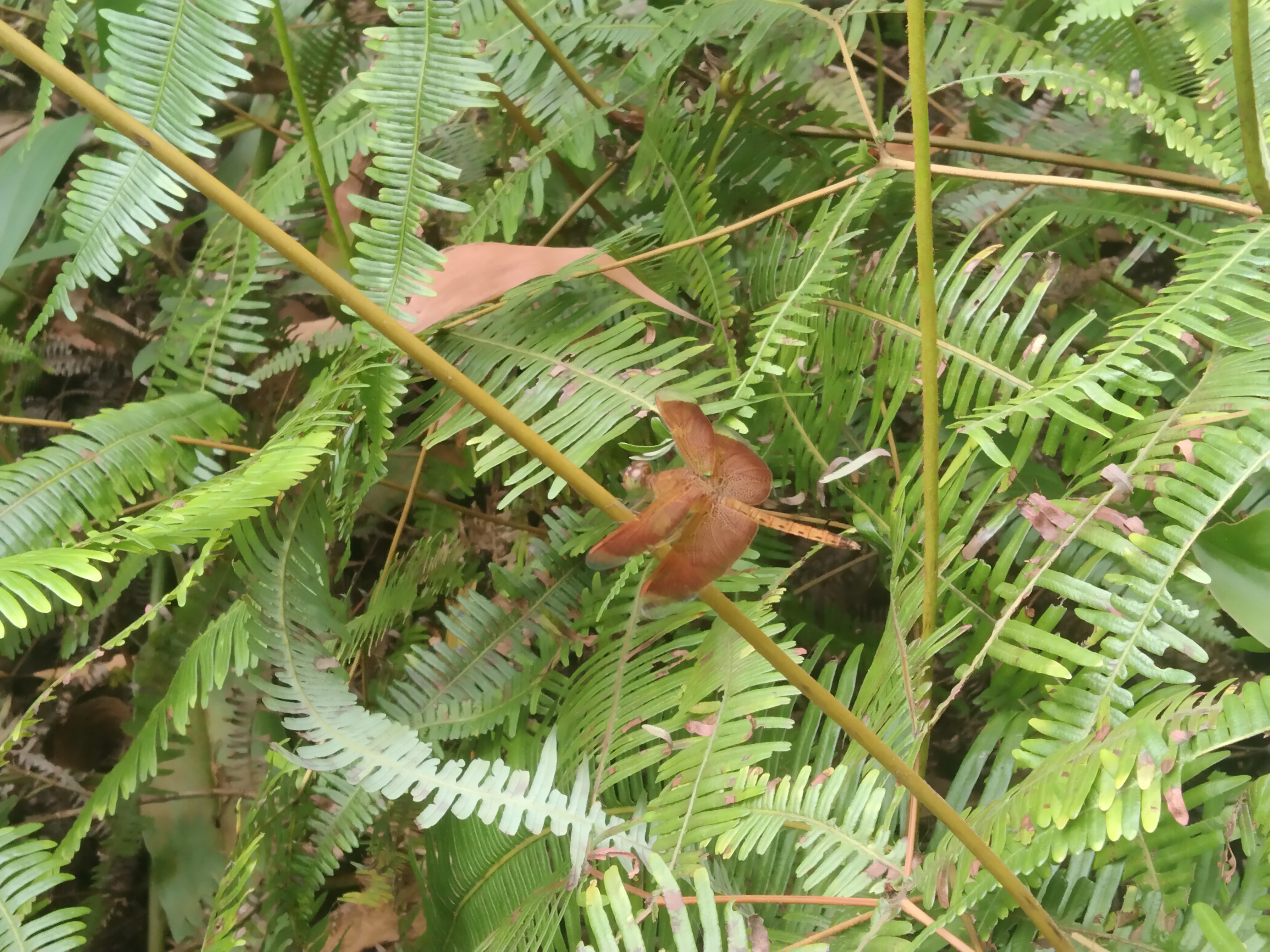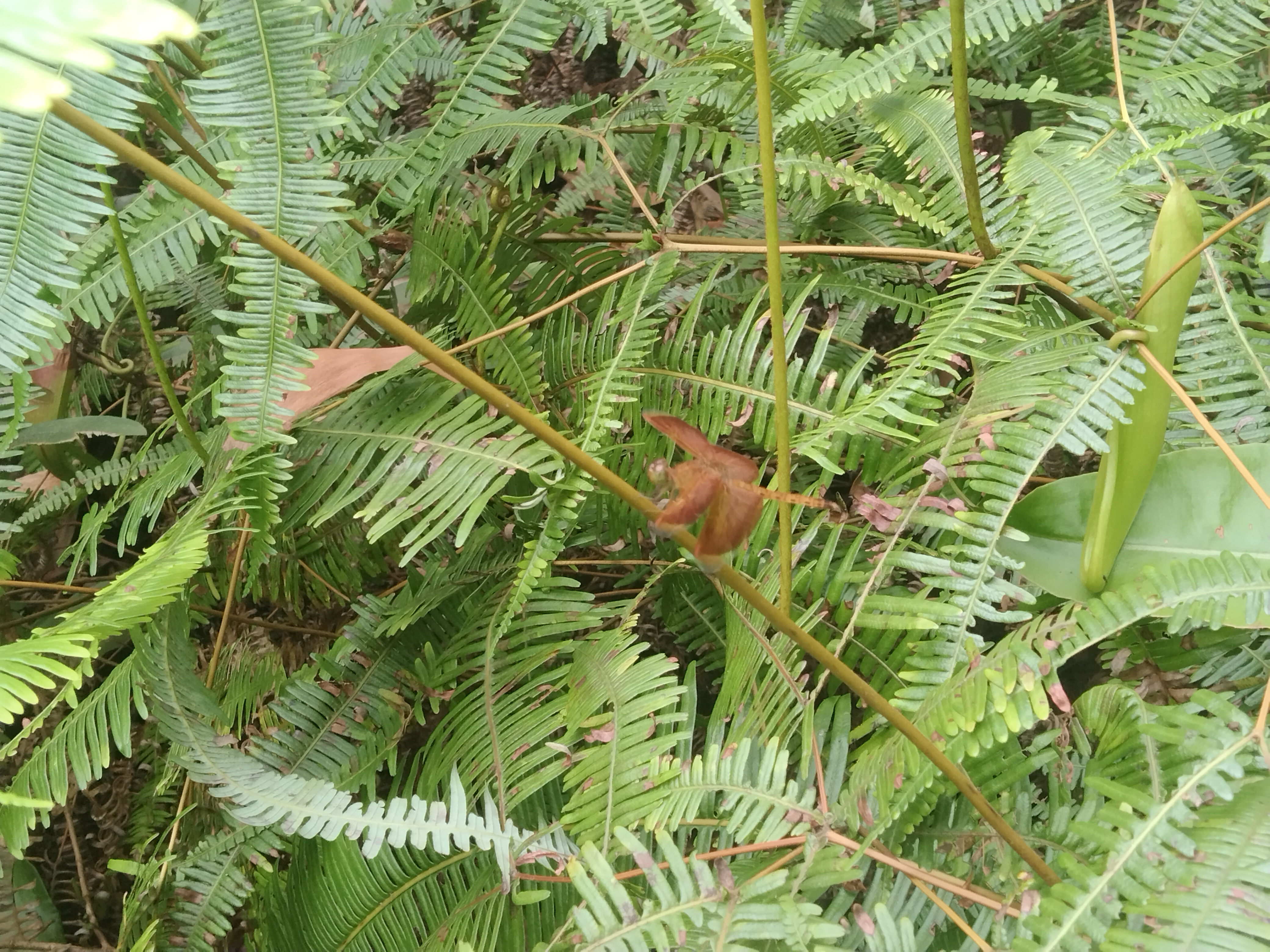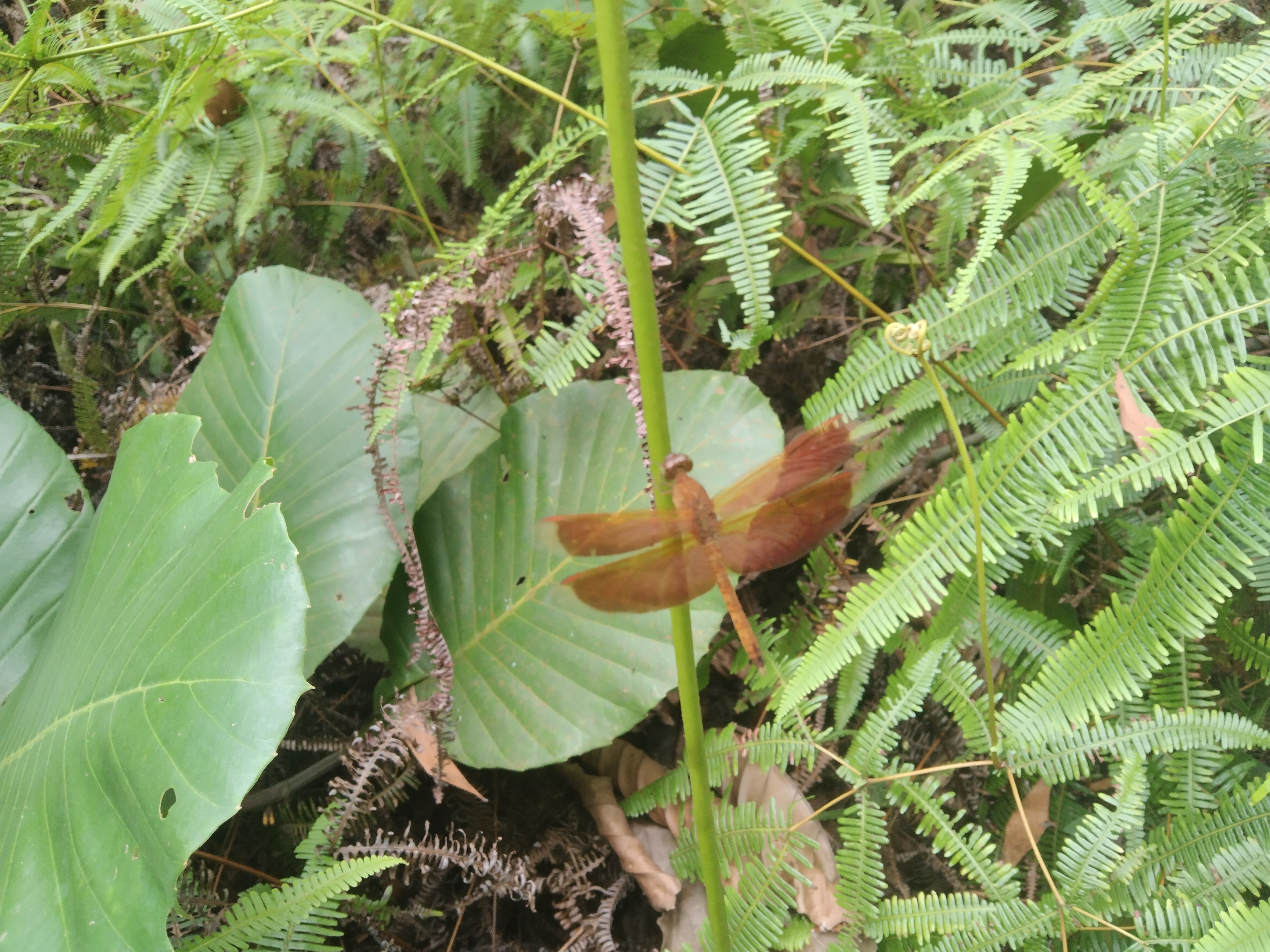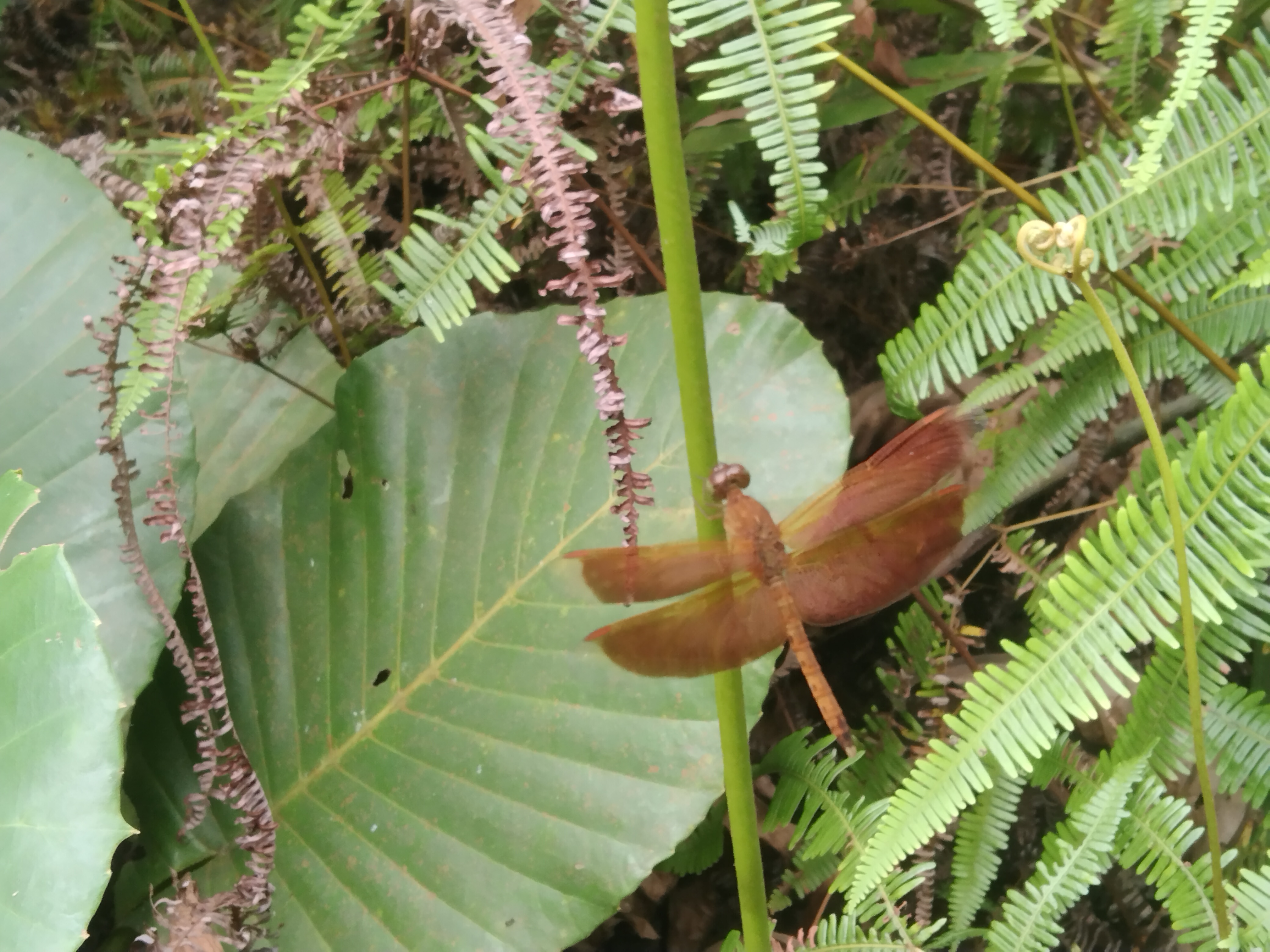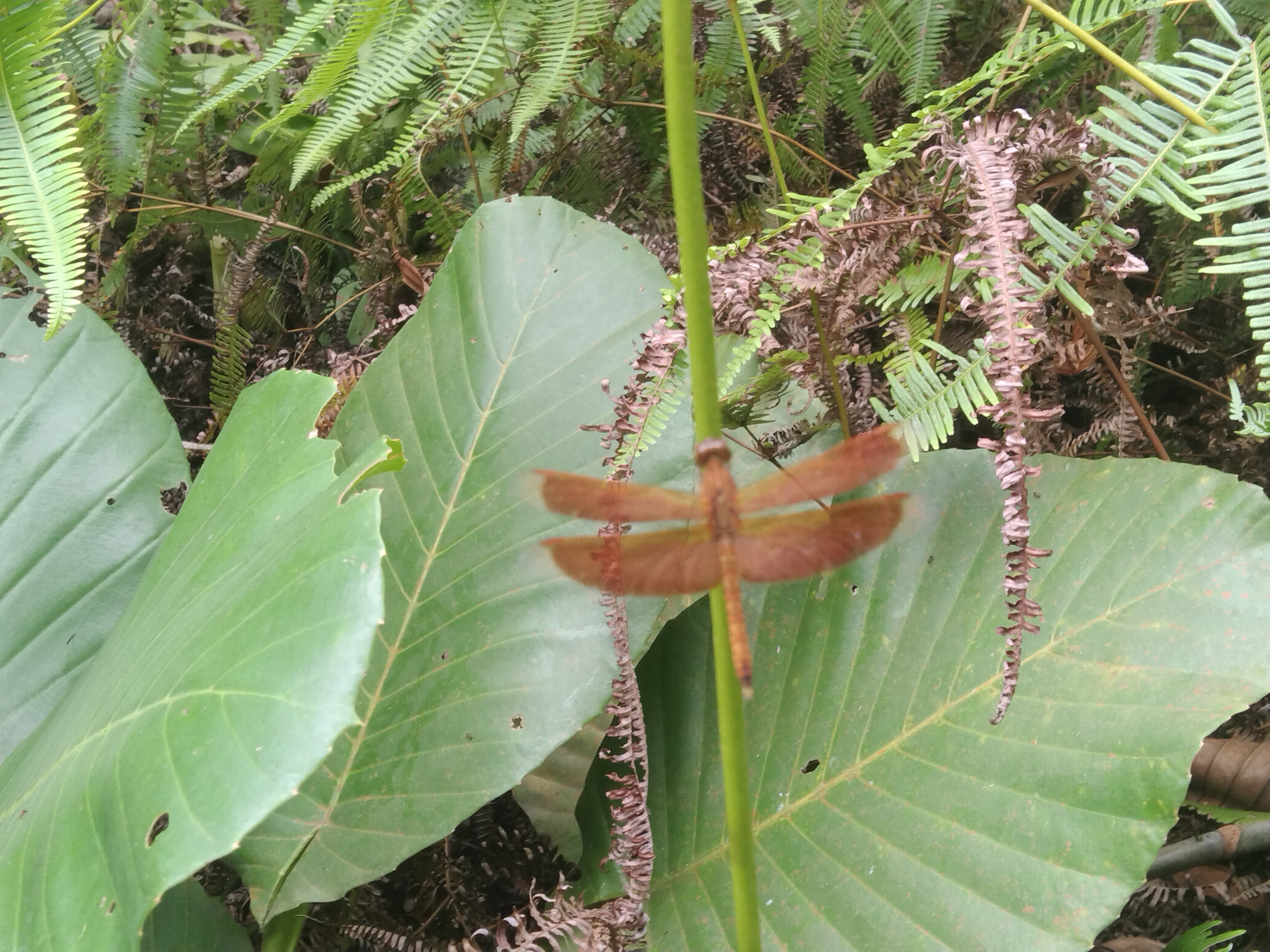 In this picture not only a dragonfly but also the surrounding environment attracts our attention The presence of various types of plants ferns and large leaves highlights the natural balance of nature The presence of plants brings life to any environment provides oxygen and protects biodiversity This picture reminds us of how important it is for us to love and preserve nature Another noteworthy thing about this picture is the perfect timing Dragonflies usually fly fast so it is quite difficult to capture them in a still position but while taking this picture I was able to capture the right moment The light color and background all combine to make the picture very beautiful For me this picture inspires us to observe the beauty of nature more deeply In the midst of our busy lives we often ignore the small beauty around us but nature always gives us the opportunity to see something new If we take a little time to observe the plants birds insects and other animals then our life will become more joyful Overall this picture is a unique presentation of the immense beauty of nature The combination of red in the green the mysterious presence of the dragonfly and the softness of the natural environment together give the picture a wonderful look It reminds us that every moment of nature is precious and it It is also our responsibility to preserve it, so let's enjoy the beauty of nature and love it!