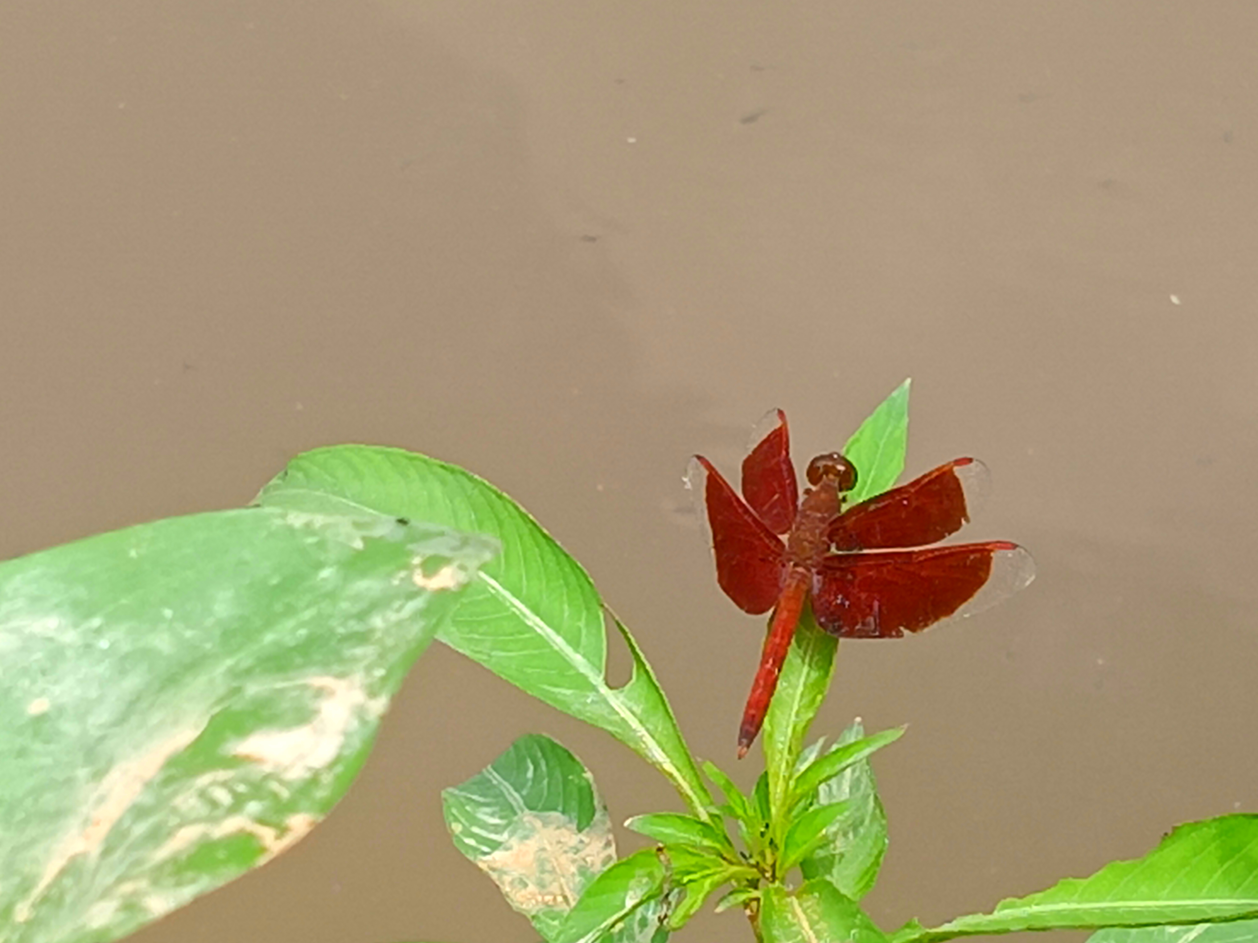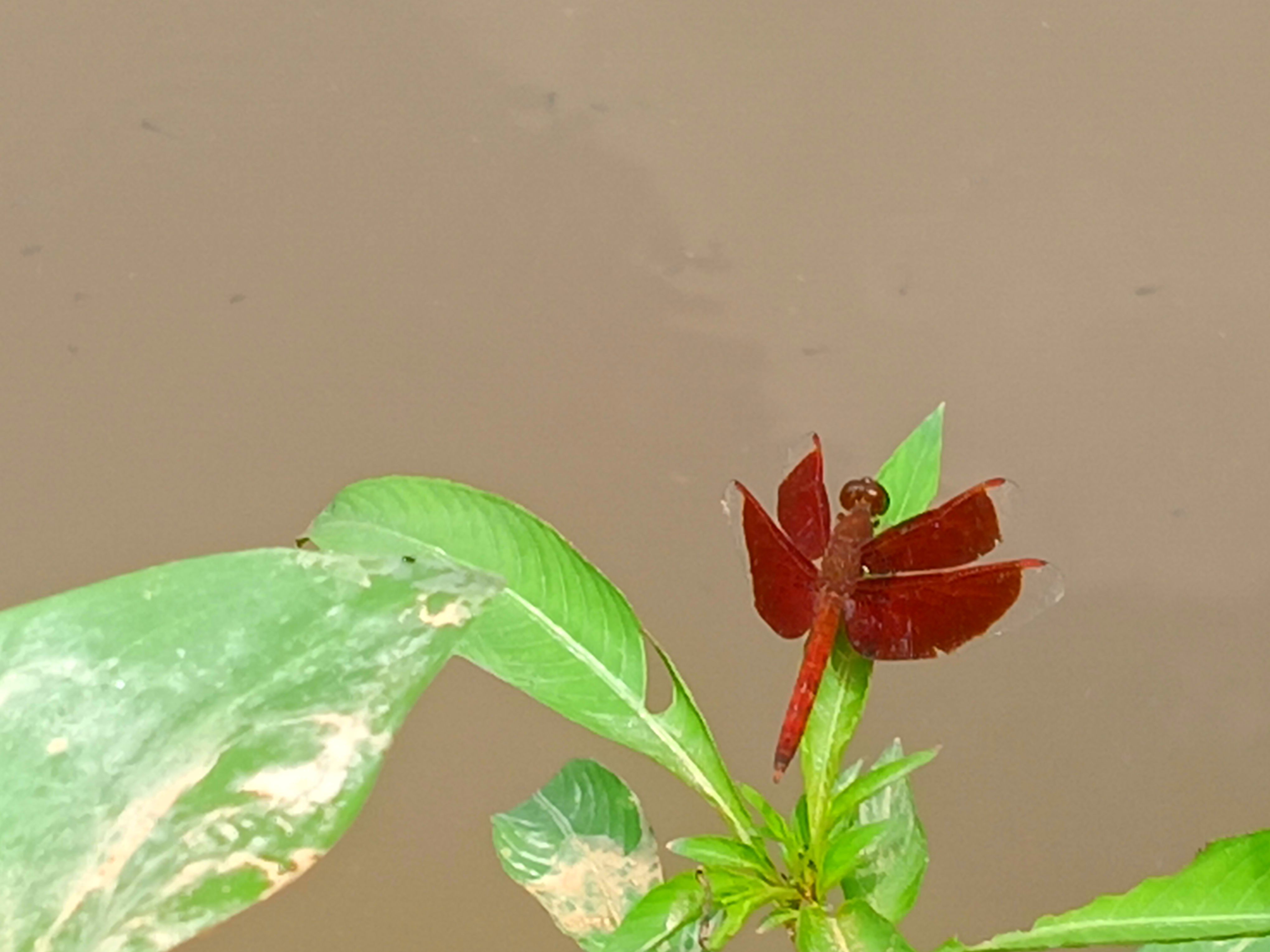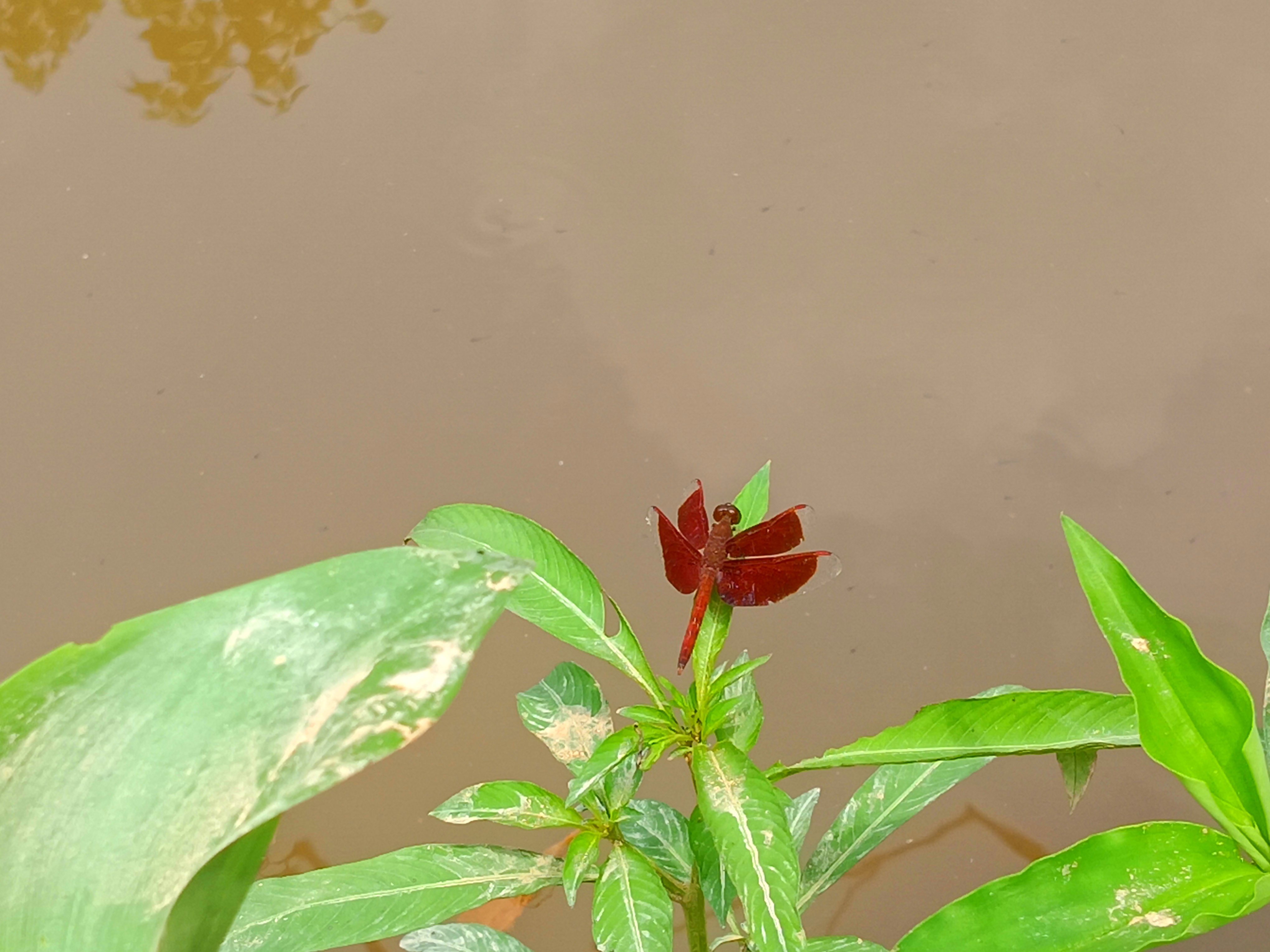 And the combination of these two colors makes its wings more eye-catching and each vein of the wing is delicately captured and which is a beautiful example of its natural design. This red dragonfly becomes more visible against the background of green leaves and the combination of the opposite colors of green and red creates a wonderful contrast and it seems as if nature has combined the colors of a picture painted by itself and with this the calm environment around and the light brown color of the water and the soft light make the whole frame soft and peaceful and dragonflies are not only a symbol of beauty but also play an important role in maintaining the balance of nature and they keep the environment clean by eating mosquitoes and other small insects and spiders and therefore this presence of the red dragonfly is not only a pleasure for the eyes but also carries a silent message of the well-being of nature.