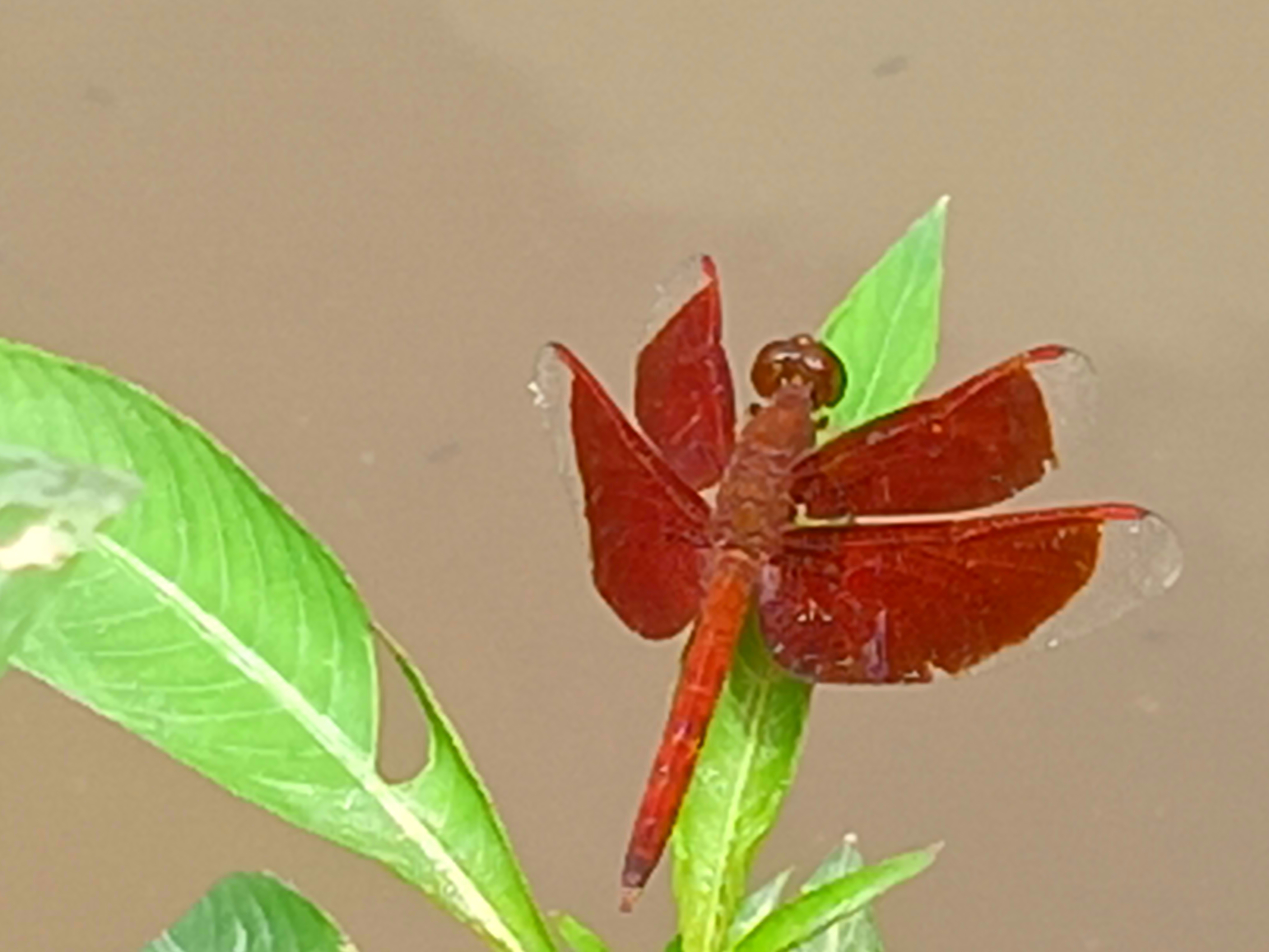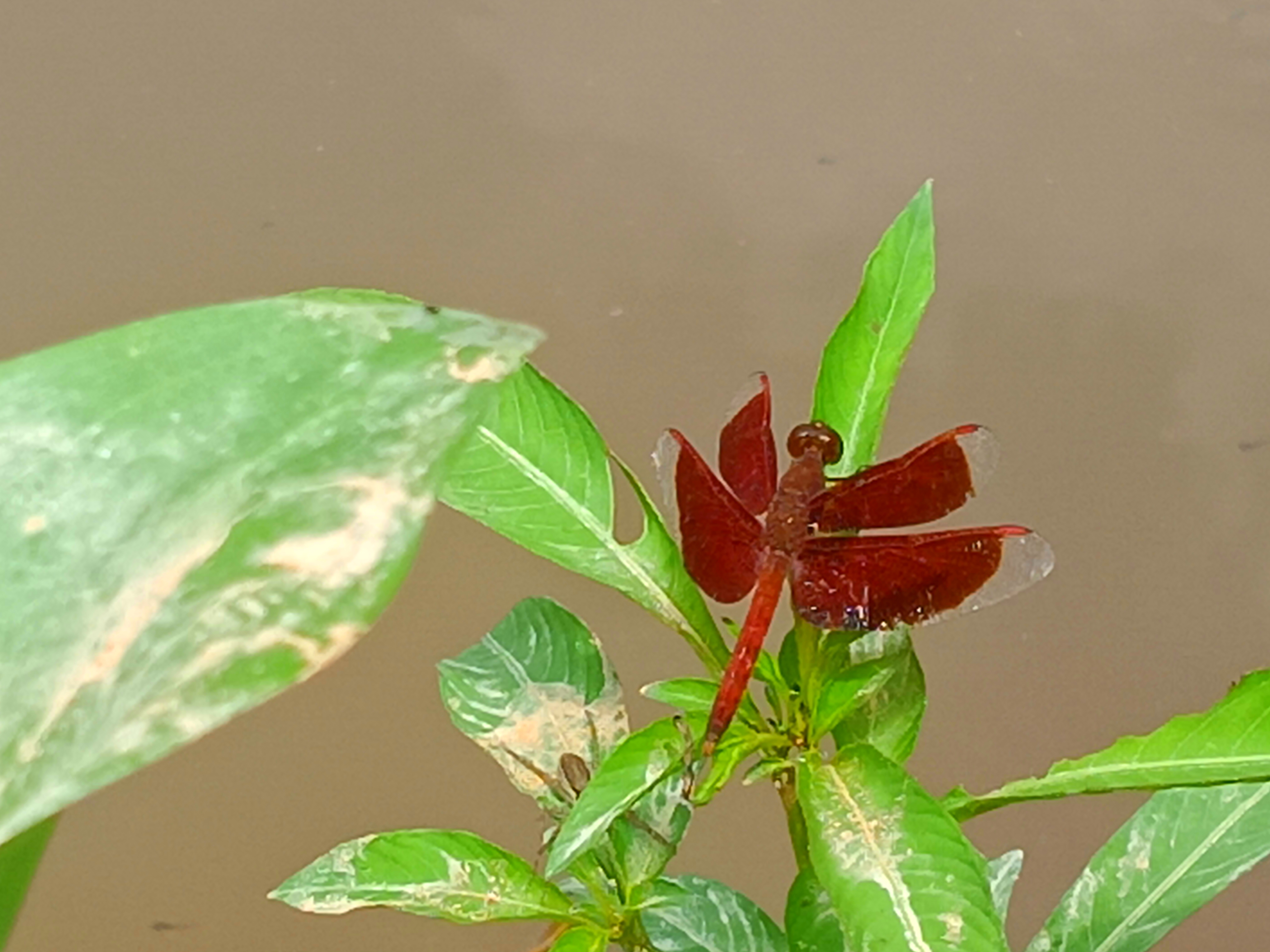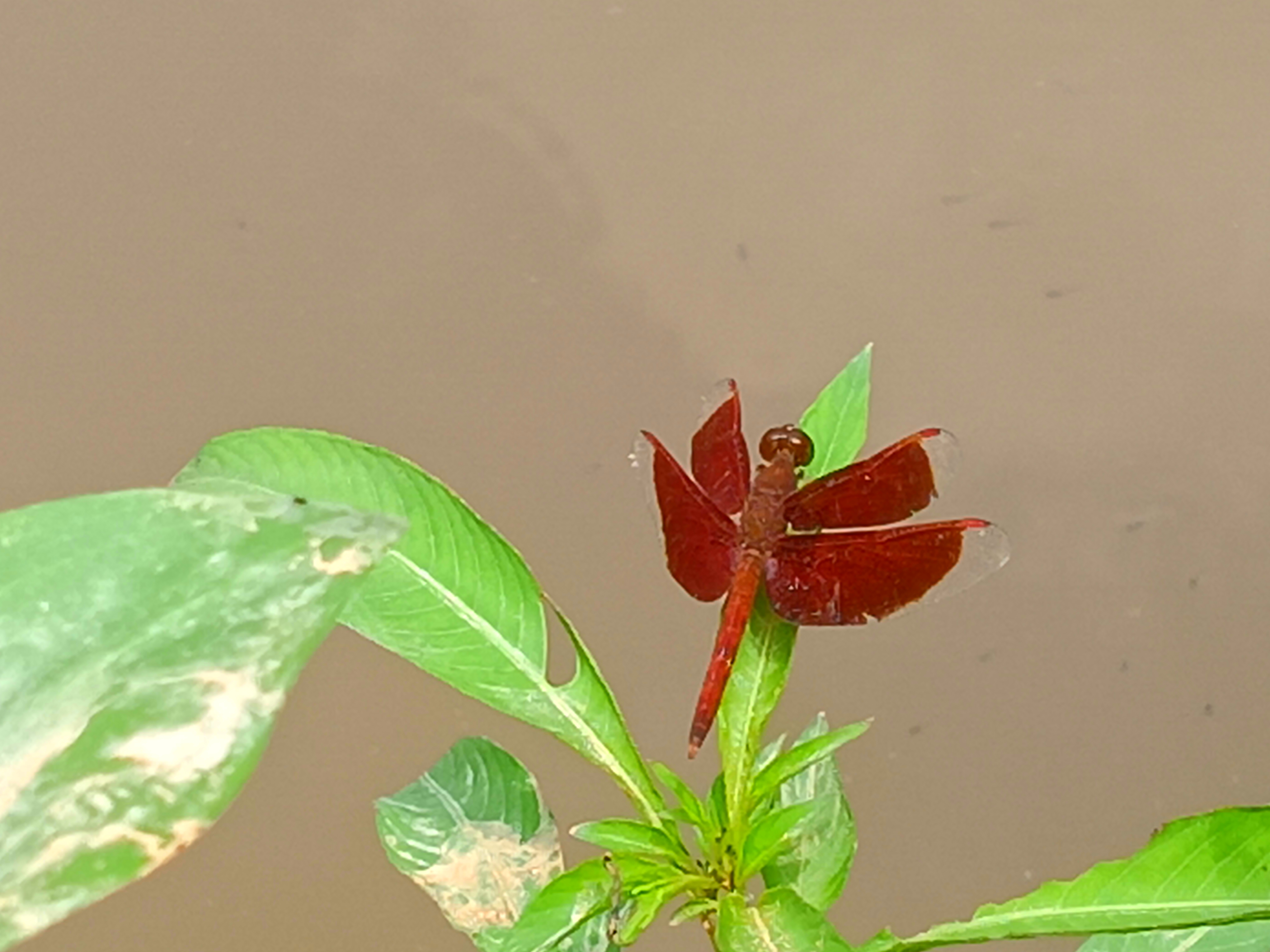 And the combination of these two colors makes its wings more eye-catching and each vein of the wing is delicately captured and which is a beautiful example of its natural design. This red dragonfly becomes more visible against the background of green leaves and the combination of the opposite colors of green and red creates a wonderful contrast and it seems as if nature has combined the colors of a picture painted by itself and with this the calm environment around and the light brown color of the water and the soft light make the whole frame soft and peaceful and dragonflies are not only a symbol of beauty but also play an important role in maintaining the balance of nature and they keep the environment clean by eating mosquitoes and other small insects and spiders and therefore this presence of the red dragonfly is not only a pleasure for the eyes but also carries a silent message of the well-being of nature.